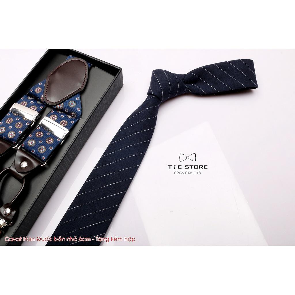 ✨Cavat nam Hàn Quốc cao cấp bản nhỏ (6cm) - Tặng kèm hộp, Màu Xanh kẻ