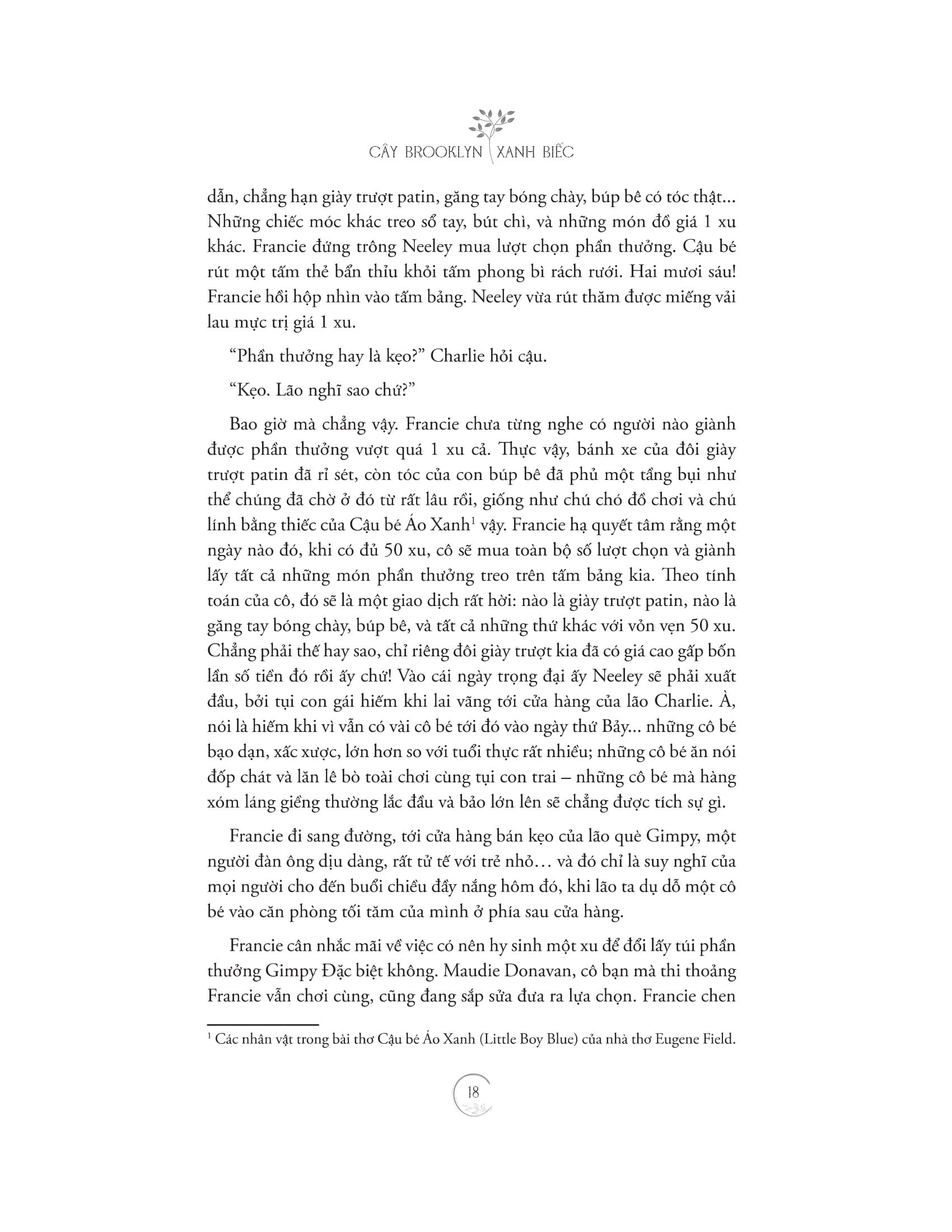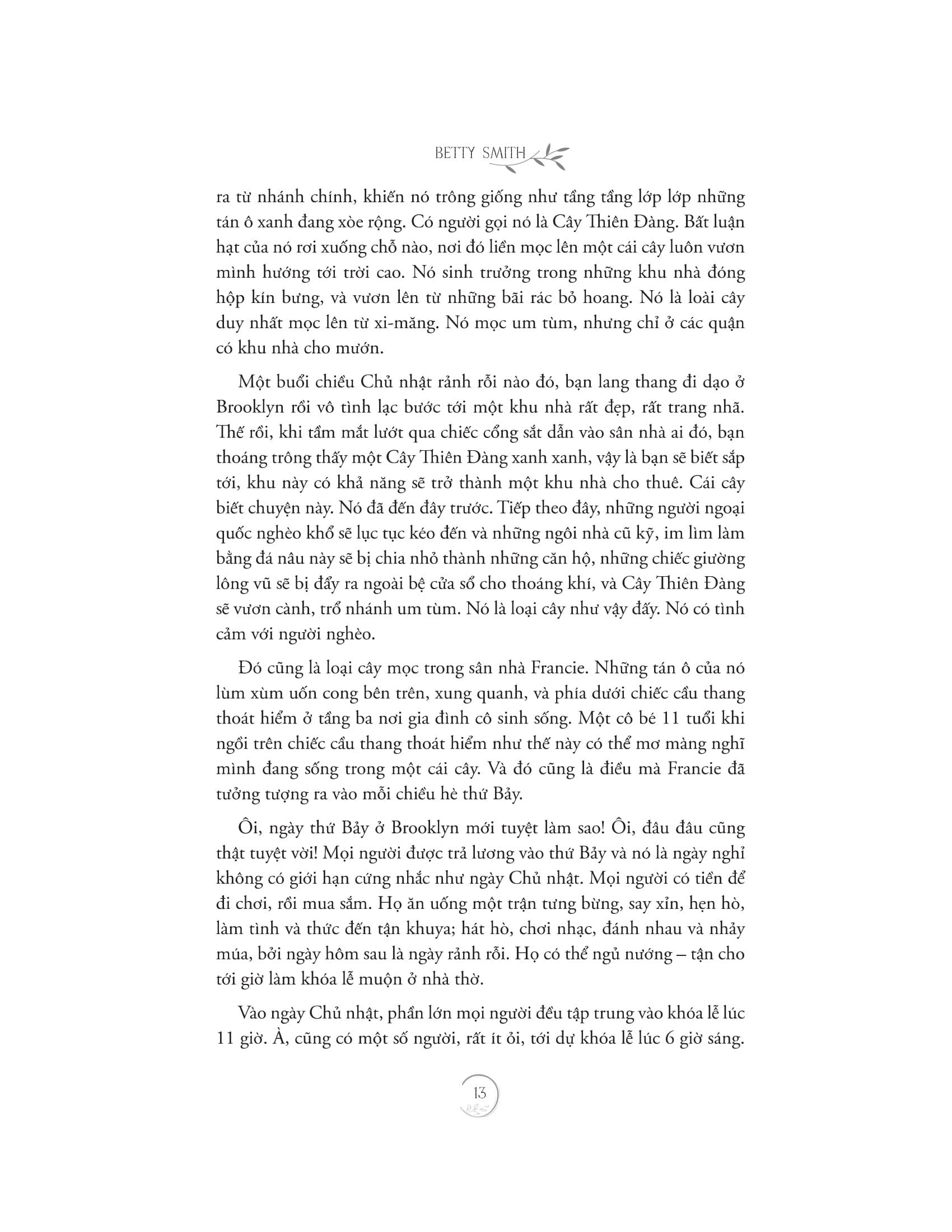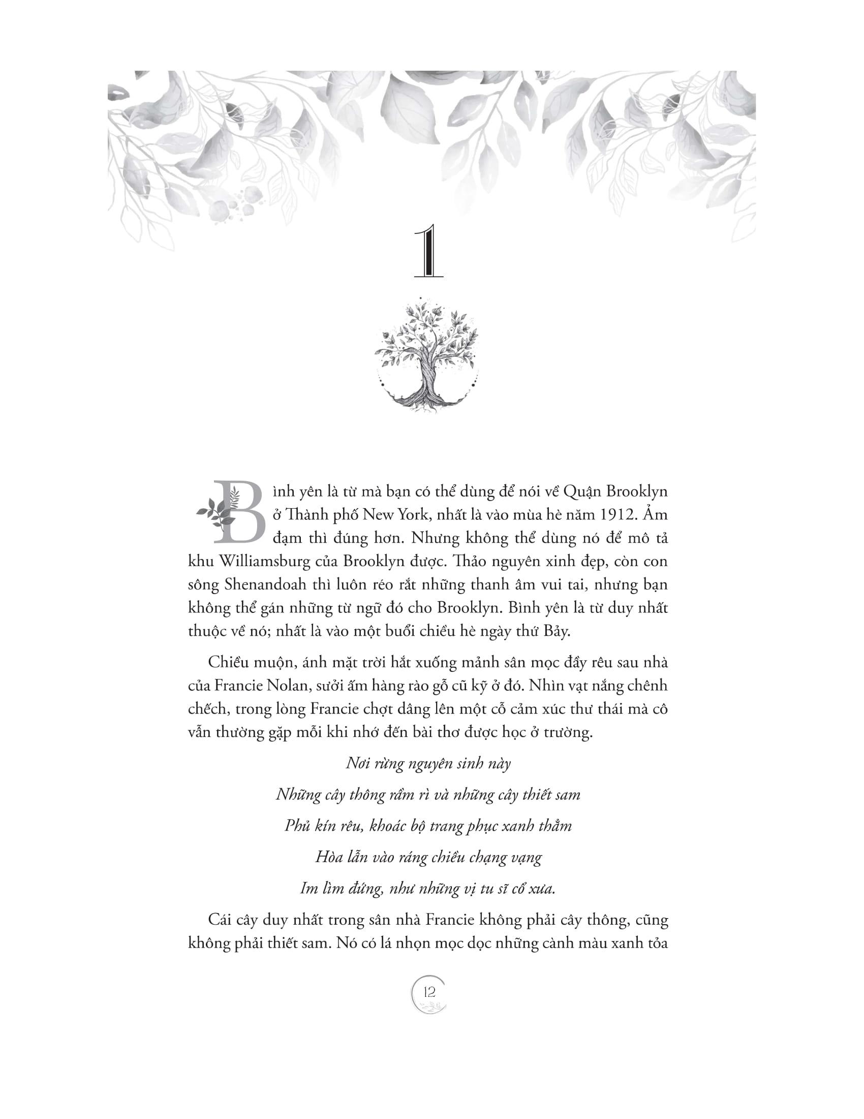 Ngay từ khi chập chững bước chân đến thế giới, Francie Nolan đã được định sẵn sẽ phải trở thành một thiếu nữ cứng rắn, bởi vì lớn lên trong khu ổ chuột Williamsburg ở Brooklyn, New York đòi hỏi con người ta phải luôn dũng cảm, khôn ngoan và mạnh mẽ. Thường bị hàng xóm khinh miệt vì những hành vi thất thường và lập dị của gia đình mình – chẳng hạn như bố cô, Johnny thích rượu và dì Sissy liên tục kết hôn nối tiếp nhau mà không ly hôn với chồng trước – không ai, kể cả là Francie, có thể nói rằng cuộc sống của gia đình Nolan thiếu kịch tính. Với những bước ngoặt choáng ngợp, đau lòng nhưng cũng đầy thăng hoa, những trải nghiệm hằng ngày của gia đình Nolan hiện lên chân thật, nguyên bản và là mối dây dịu dàng buộc những thành viên trong gia đình lại với nhau.