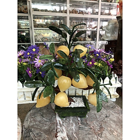 Chất liệu: Quả đào bằng đá thạch anh hồng, lá và chậu cây là đá ngọc Ấn Độ Bao gồm: 28 quả Kích thước: Cao 50 cm x Ngang 34 cm Khối lượng: 6 kg
