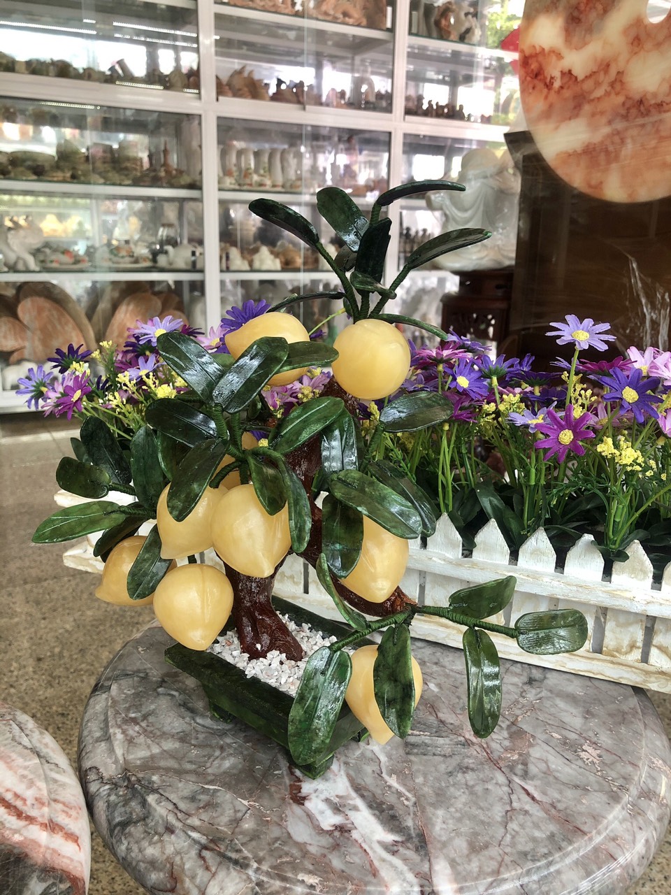 Mua tại TiktokKích thước: Cao 30 cm Bao gồm 9 quả Khối lượng: 1,83 kg Cây đào đá ngọc hoàng long tượng trưng cho sự thu hoạch, kết quả hoặc sự đầu tư mang lại lợi lộc lớn. Cây đào trong kinh doanh giúp mang lại nguồn năng lượng tích cực, cát khí giúp việc làm ăn được thuận lợi, hanh thông. Từ xưa, cây đào còn tượng trưng cho sự trường thọ. Cây đào mang ý nghĩa sức khỏe vẹn toàn cho con người, một cuộc sống ít ốm đau, bệnh tật. Vị trí đặt : Trưng bày văn phòng, phòng khách, bàn làm việc, công ty, quầy thu ngân, cửa hàng kinh doanh, quầy lễ tân,…