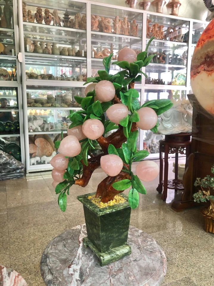 Tượng Phong Thủy Cây Đào Thạch Anh Hồng tự nhiên 18 quả to đẹp Kích thước cao 55cm x ngang 42cm x sâu 20cm Anh Chị trưng phòng khách nhà, công ty biểu tượng sự