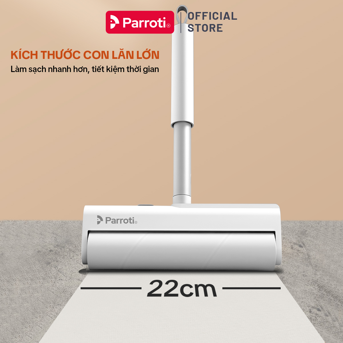 Cây lăn bụi cán nhôm cao cấp Parroti Roller - RE01 với chiều dài lõi lăn 22cm, 55 lớp siêu dính giúp việc vệ sinh ga giường, thảm nhà, nệm, rèm cửa, quần áo ...