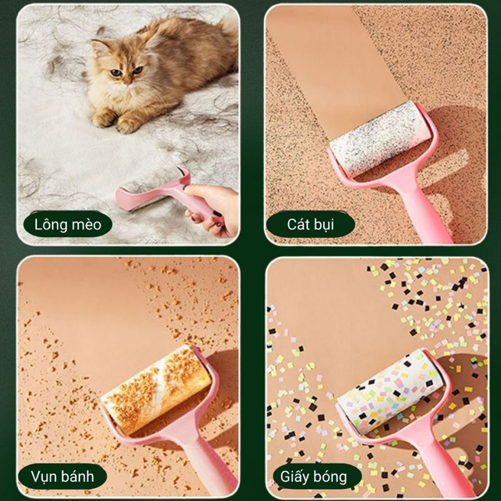 - Hiệu quả trong việc lăn bụi: Sản phẩm có khả năng bám dính cao, giúp lăn bụi và bụi nhỏ một cách hiệu quả từ các bề mặt khác nhau. Thích hợp để làm sạch lông thú cưng trên ghế sofa, quần áo ga giường và các nơi khác mà lông thú cưng có thể rơi xuống.