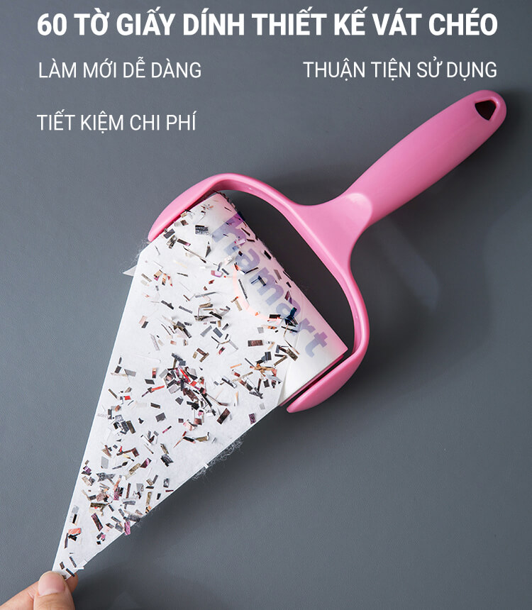 CÔNG DỤNG Loại bỏ nhanh xơ vải, bụi bẩn, tóc rụng, lông thú cưng trên quần áo, sofa, ga giường, thảm, ghế ô tô… Keo dính chất lượng, bám chắc bụi bẩn nhưng không để
