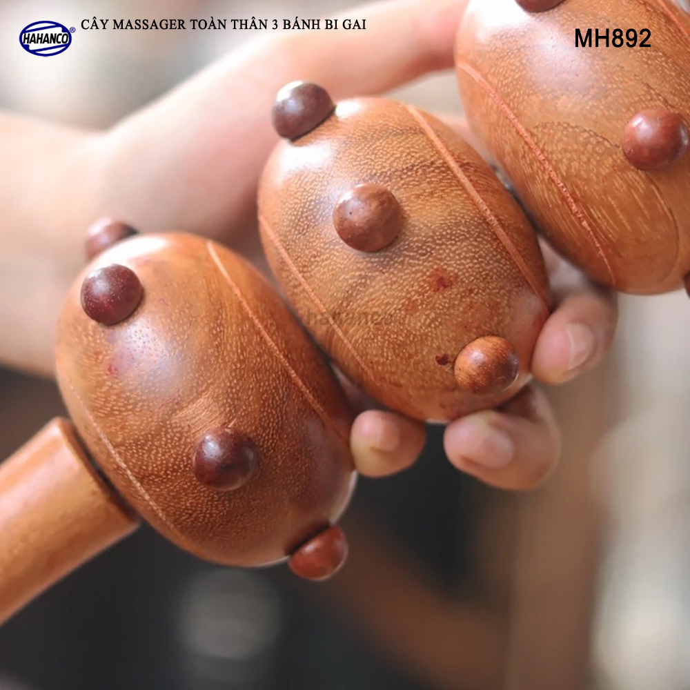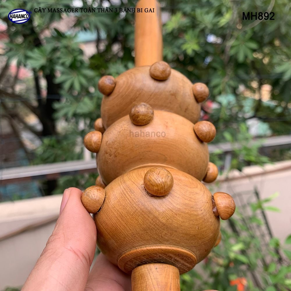 ✨Cây lăn Massage toàn thân 3 bánh bi gai bằng gỗ Bách Xanh thơm (MH892) chăm sóc sức khỏe - giảm căng thẳng mệt mỏi
