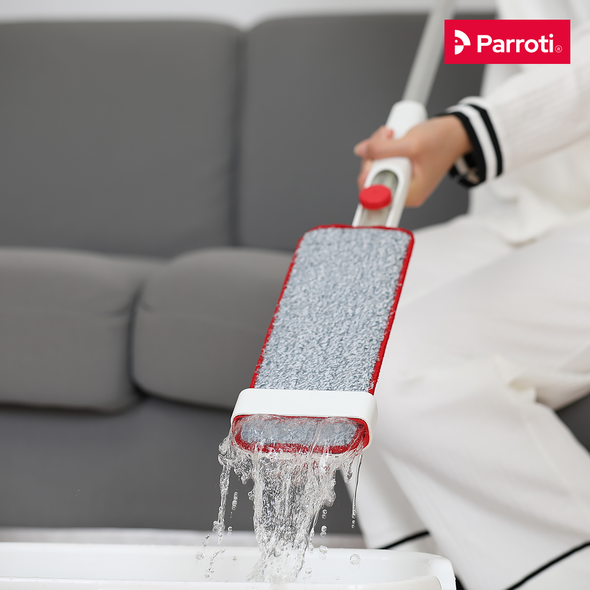 - Bạn phải mang thùng nước nặng nề, phải dùng tay để giặt miếng lau? Bộ lau nhà thông minh Parroti Magic có chức năng TỰ VẮT: Chức năng tự vắt sẽ giúp bạn giặt và vắt sạch nước, lúc bạn lau lên sàn không để lại vệt nước, sàn nhà sẽ nhanh khô hơn, lau xong bạn có thể sinh hoạt ngay.