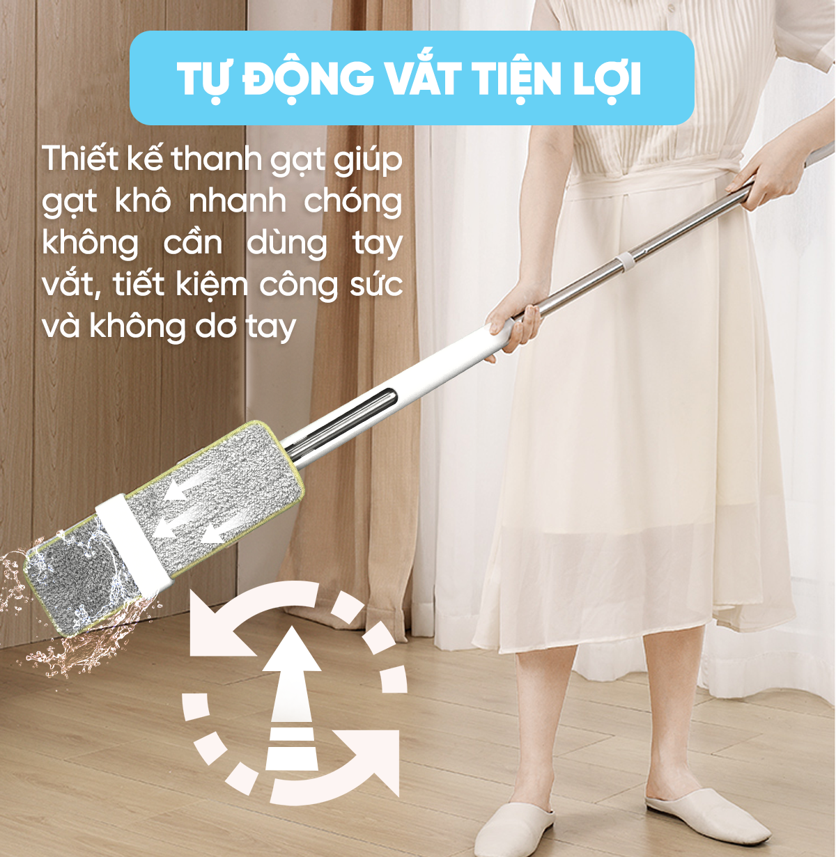 CÂY LAU NHÀ TỰ VẮT TẶNG KÈM 2 MOP LAU EDEN - HÀNG NHẬP KHẨU Ưu điểm nổi bật Cây Lau Nhà Tự Vắt Thông Minh phẳng thế hệ mới xoay 360 độ với