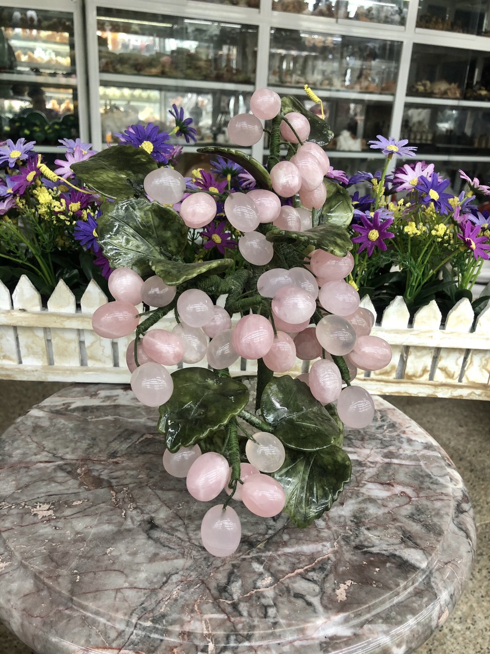 ✨Cây nho phong thủy đá thạch anh hồng - Cao 26 cm