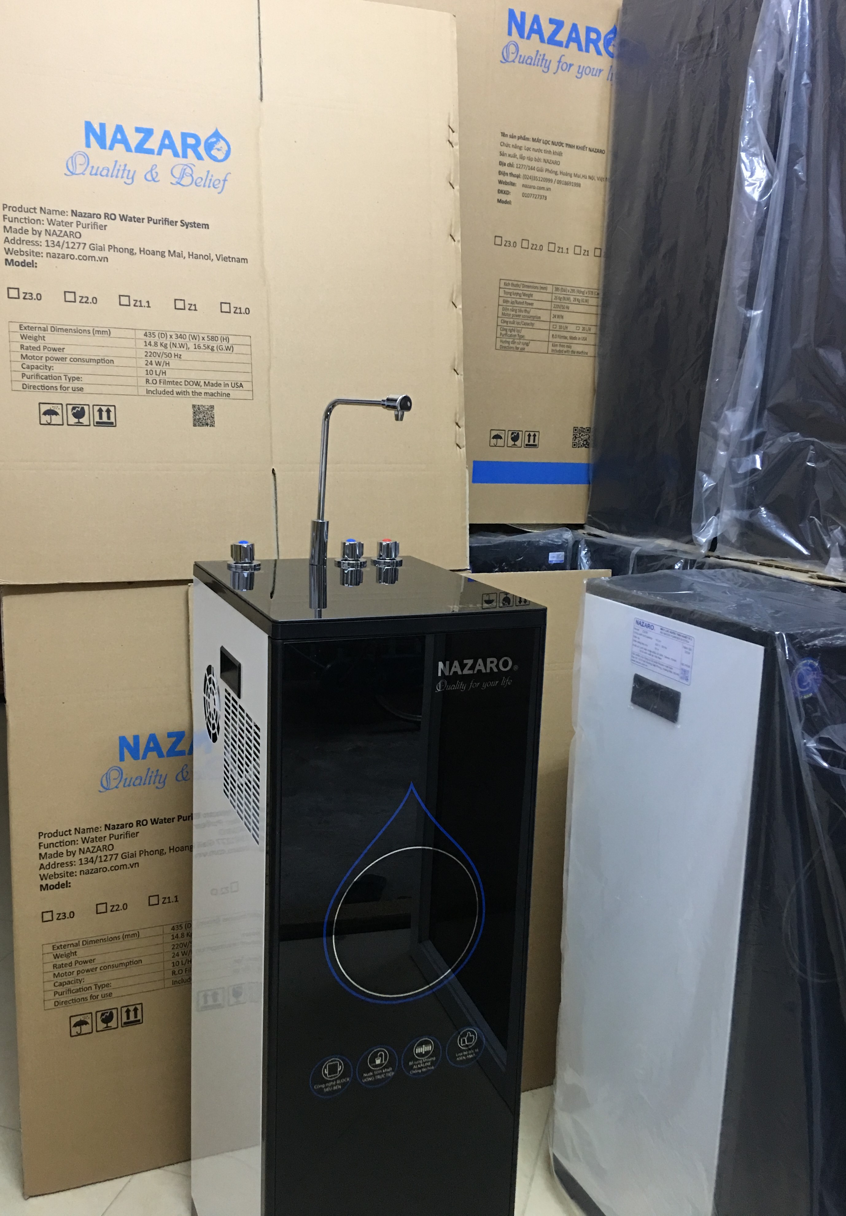 Máy lọc nước tích hợp nóng lạnh, nguội model Z302RO: CHỨC NĂNG: Lọc ra nước tinh khiết và làm nóng, lạnh nước để sử dụng cho việc uống trực tiếp và nấu ăn Công nghệ làm lạnh bằng Block siêu bền, lạnh sâu và tiết kiệm điện. Nhiệt độ nước lạnh đạt được từ 10oc - 6oC Thiết kế Thông minh và tinh tế Nhiệt độ nước nóng có thể điều chỉnh được từ 30oC đến 100oC, phù hợp với các nhu cầu sử dụng Máy có công tắc nóng và lạnh riêng biệt: Khi không có nhu cầu sử dụng có thể tắt 1 trong 2 chức năng nóng và lạnh giúp tiết kiệm điện Tích hợp hệ thống lọc với 06 cấp lọc tiêu chuẩn Nazaro Công suất lọc đạt được 10L/h: Đảm bảo cung cấp đủ nước tinh khiết cho cả gia đình hay phòng khách sử dụng để uống hoặc nấu ăn Màng lọc RO Filmtec của DOW, made in USA: đảm bảo độ tinh khiết cho nước uống trực tiếp Đặc biệt có Lõi ALKALINE làm tăng độ pH của nước giúp trung hoà axit dư trong cơ thể do đó phòng tránh được bệnh do axit dư gây ra và bổ sung khoáng chất tự nhiên tốt cho sức khoẻ Hệ thống điện nhập khẩu từ Đài Loan: Linh kiện cao cấp nên máy chạy bền bỉ và êm ru