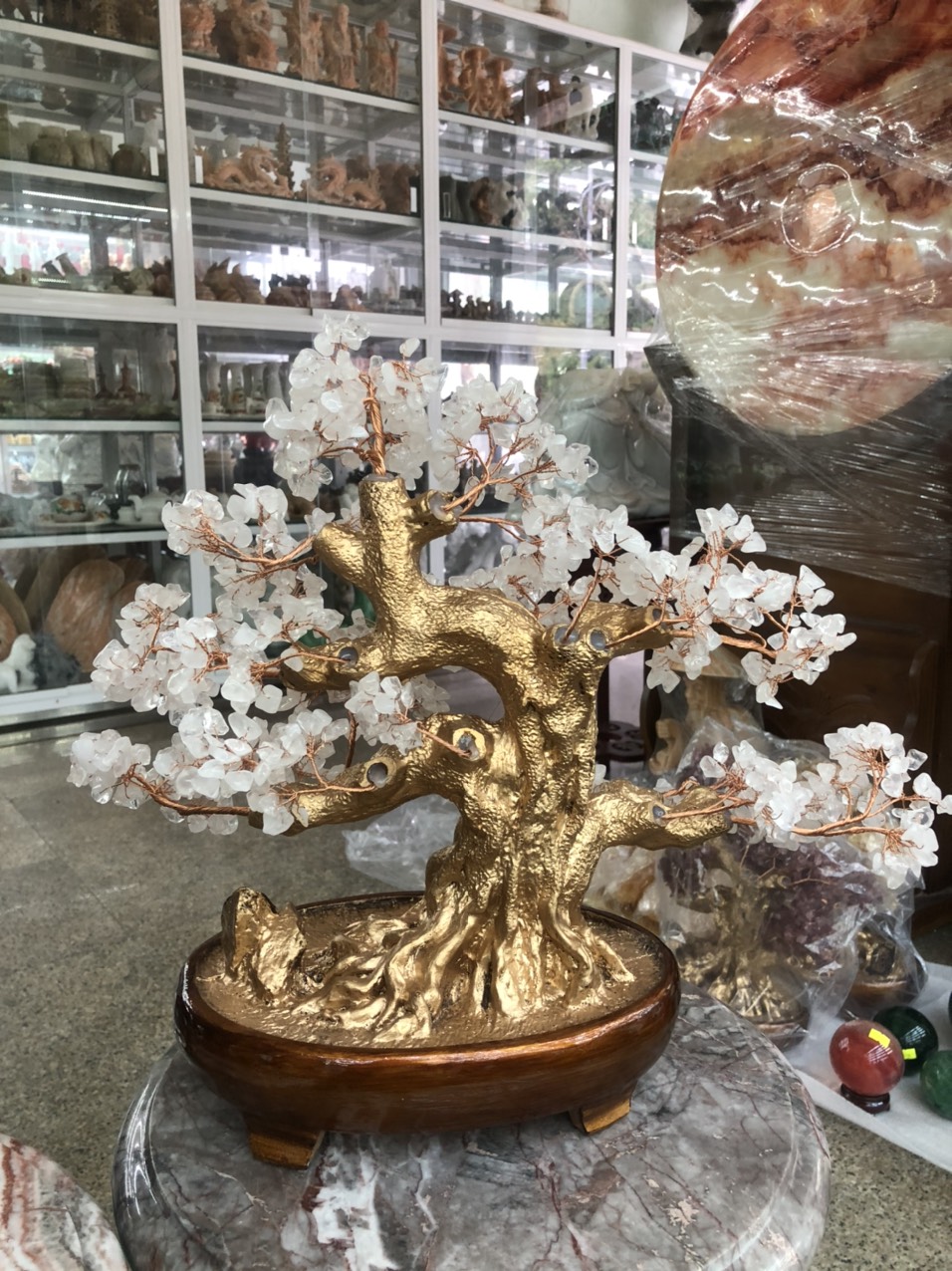 ✨Cây Tài Lộc bonsai phong thủy đá thạch anh trắng - Cao 40 cm