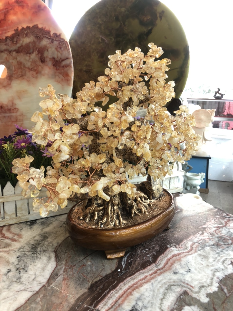 ✨Cây Tài Lộc bonsai phong thủy đá thạch anh vàng - Cao 40 cm