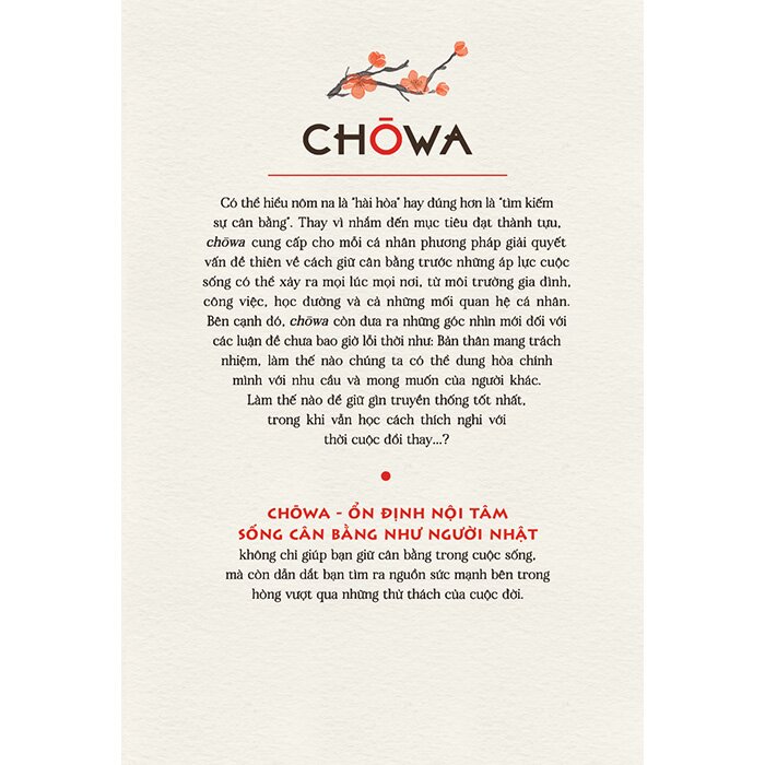 Không chỉ giúp bạn giữ cân bằng trong cuộc sống, Chōwa - Ổn định nội tâm sống cân bằng như người Nhật còn dẫn dắt bạn tìm ra nguồn sức mạnh bên trong hòng vượt qua những thử thách của cuộc đời.