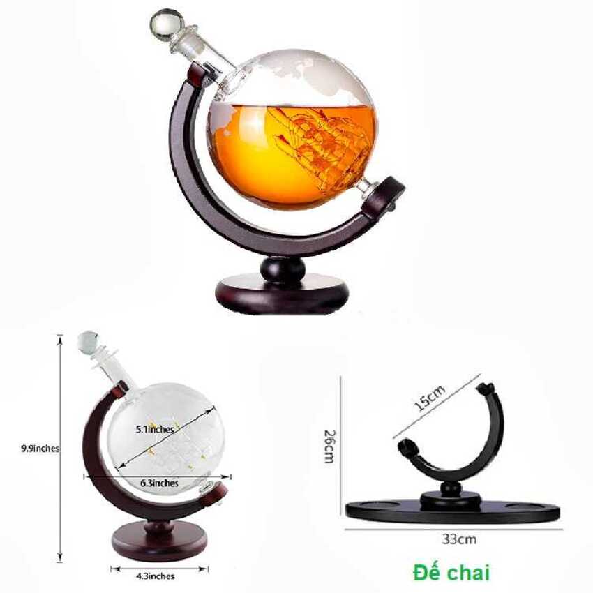 Chai Đựng Rượu Thủy Tinh 1500ML địa cầu kèm đế gỗ - Vỏ Chai Rượu Đẹp (E18)