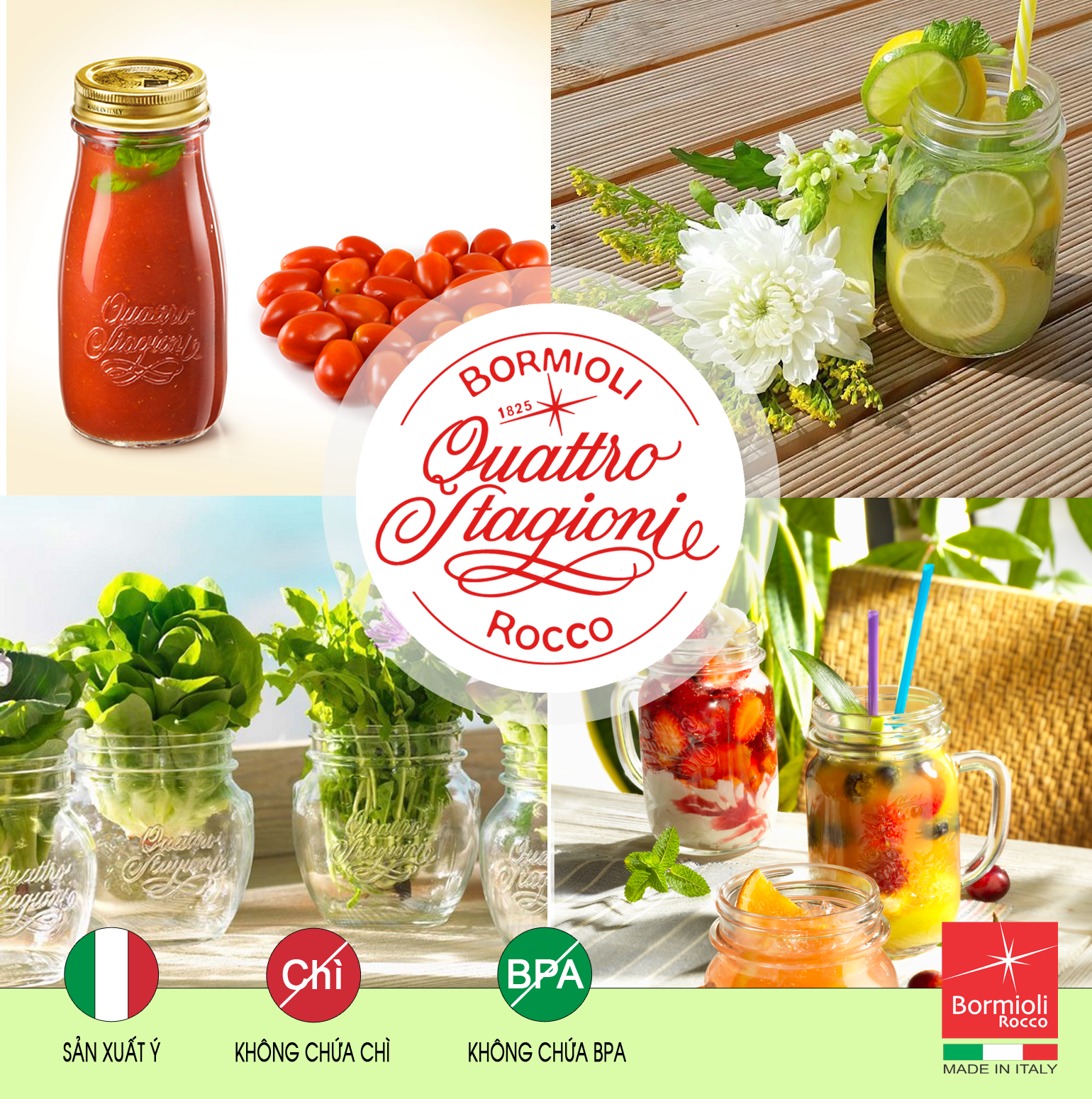 CHAI THỦY TINH NẮP VẶN QUATTRO 400ML - BORMIOLI ROCCO - ITALY Hãy tạo phong cách chuyên nghiệp khi trang bị cho khu bếp của mình những chiếc lọ hũ như thế này bạn nhé.