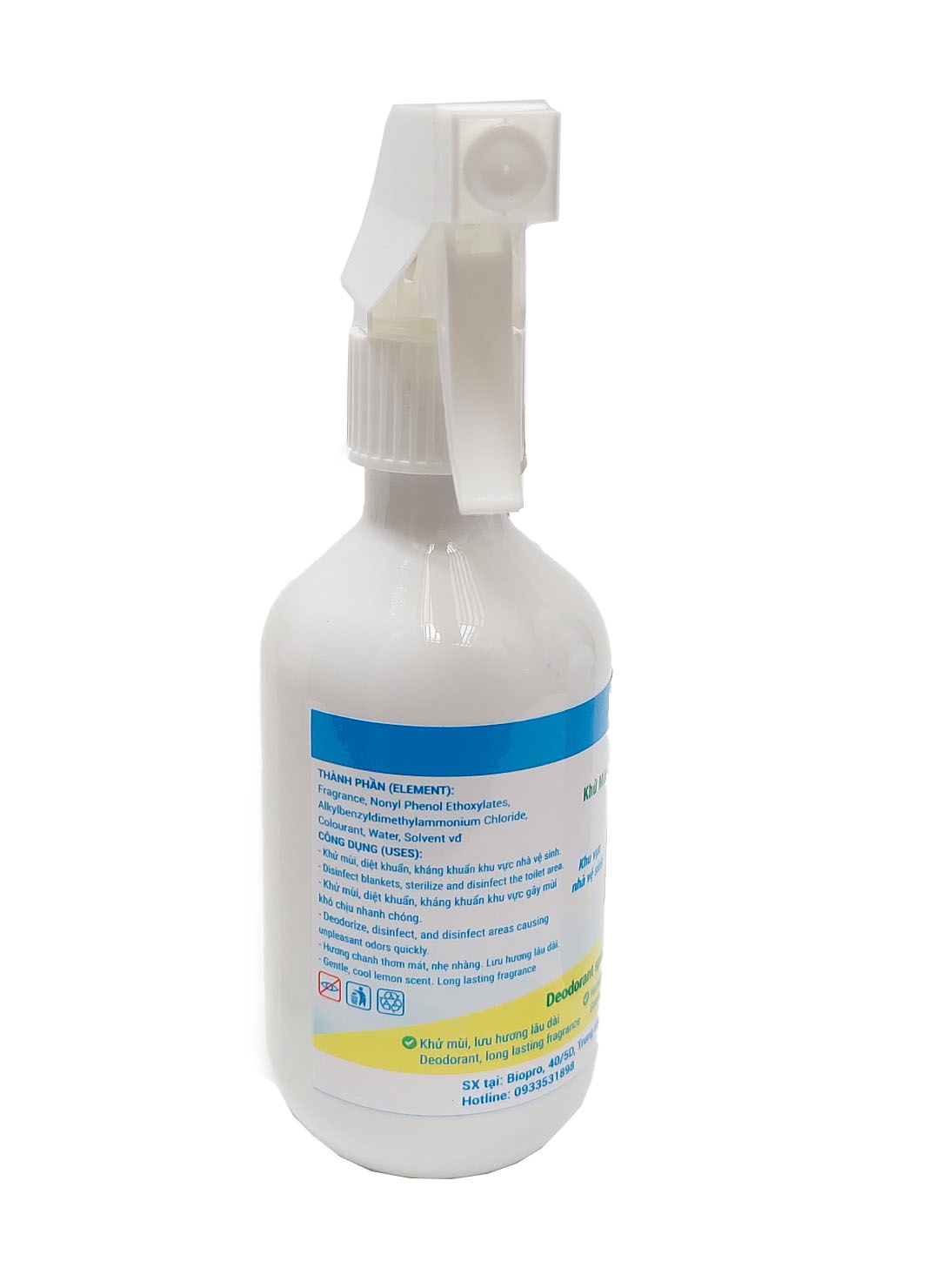 Chai xịt Biopro khử mùi diệt khuẩn kháng khuẩn Khu vực gây mùi khó chịu Khu vực nhà vệ sinh Hương chanh thơm mát dịu nhẹ => Shop xin cam kết Hạn sử dụng của