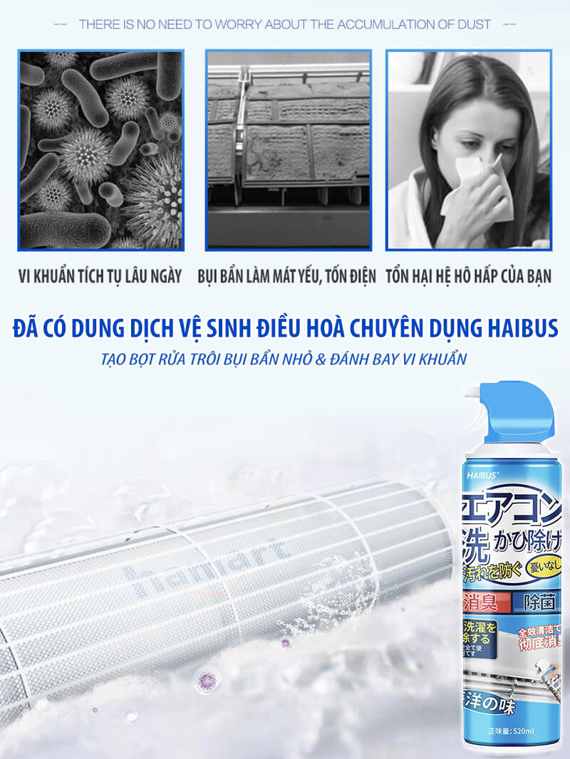 Chai Xịt Máy Lạnh Tạo Bọt 520ML tạo bọt vệ sinh điều hoà nội địa TQ là chất tẩy rửa chuyên dụng làm sạch dàn nóng, dàn lạnh của tất cả các dòng điều hoà, quạt điều hoà đứng - Không độc hại, tiện dụng, hiệu quả, đặc biệt không cần rửa với nước ! Loại bỏ bụi bẩn nhỏ, vi khuẩn tích tụ lâu ngày trong dàn lạnh - Giúp giảm thiểu hư hỏng, tăng tuổi thọ máy, gió lạnh sẽ thổi mạnh hơn nhờ thông thoáng giúp bạn tiết kiệm điện, đồng thời trả lại cho mọi người bầu không khí trong lành, tươi mát & đảm bảỏ sức khoẻ ! Đối với hộ gia đình, cửa hàng kinh doanh: Dàn lạnh nên vệ sinh trong khoảng thời gian 3 – 6 tháng/lần. Đối với các khách sạn, nhà hàng: Nên vệ sinh dàn lạnh từ 2 – 3 tháng/lần.. ĐẶC ĐIỂM NỔI BẬT: