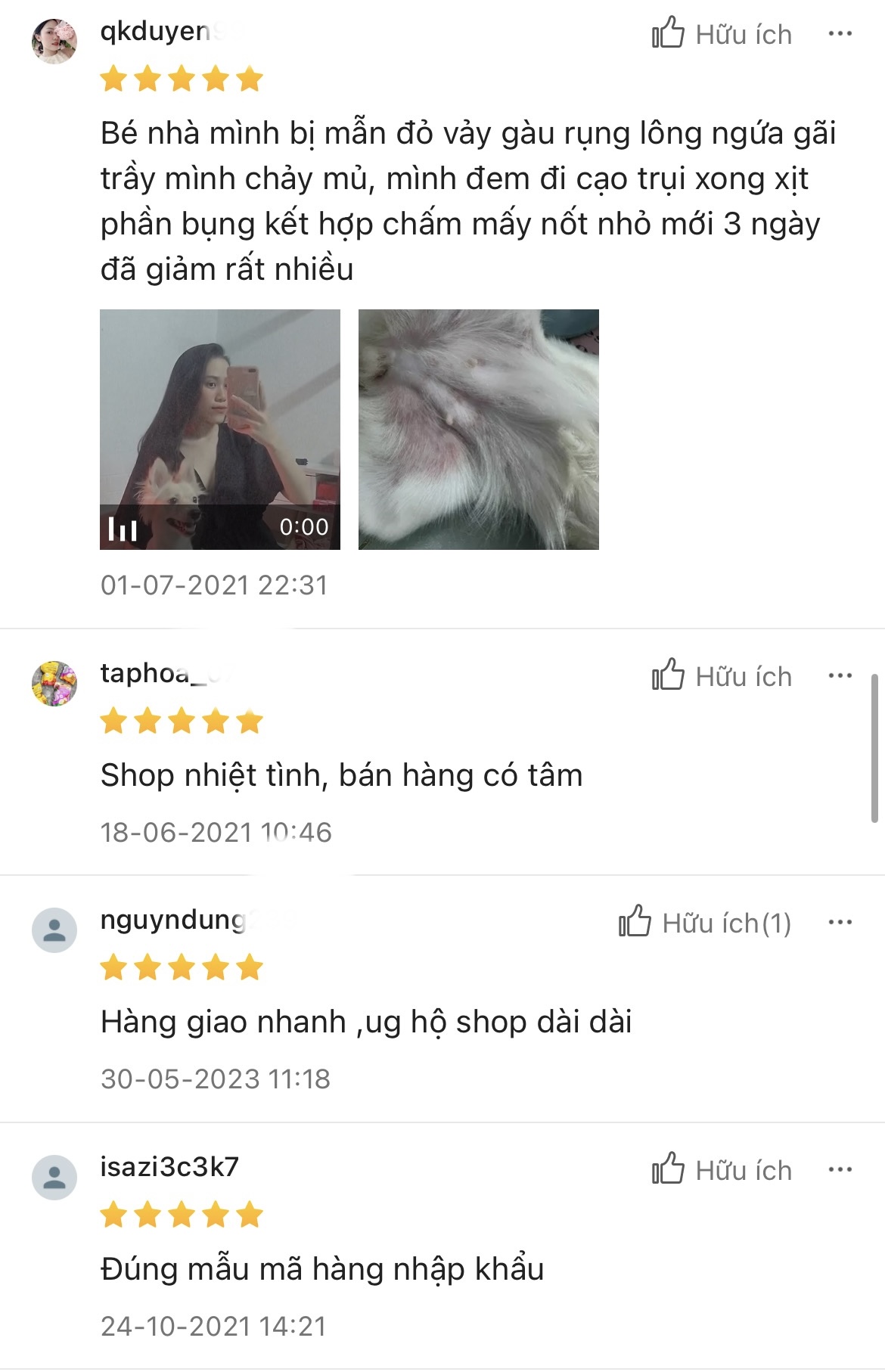- Fungikur: giảm vảy gàu, rụng lông, mẫn ngứa, giúp da mau phục hồi. An toàn cho chó mèo từ 8 tuần tuổi trở lên.