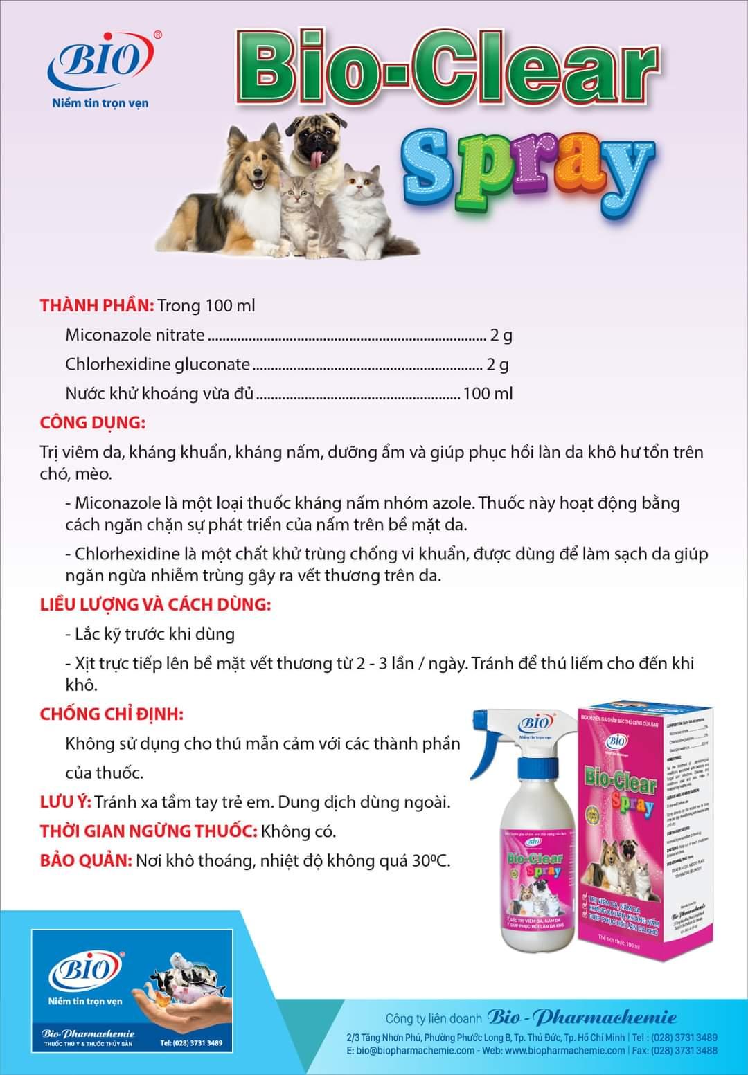 ✨Chai xịt viêm da, nấm da chó mèo Bio Clear Spray (100ml)