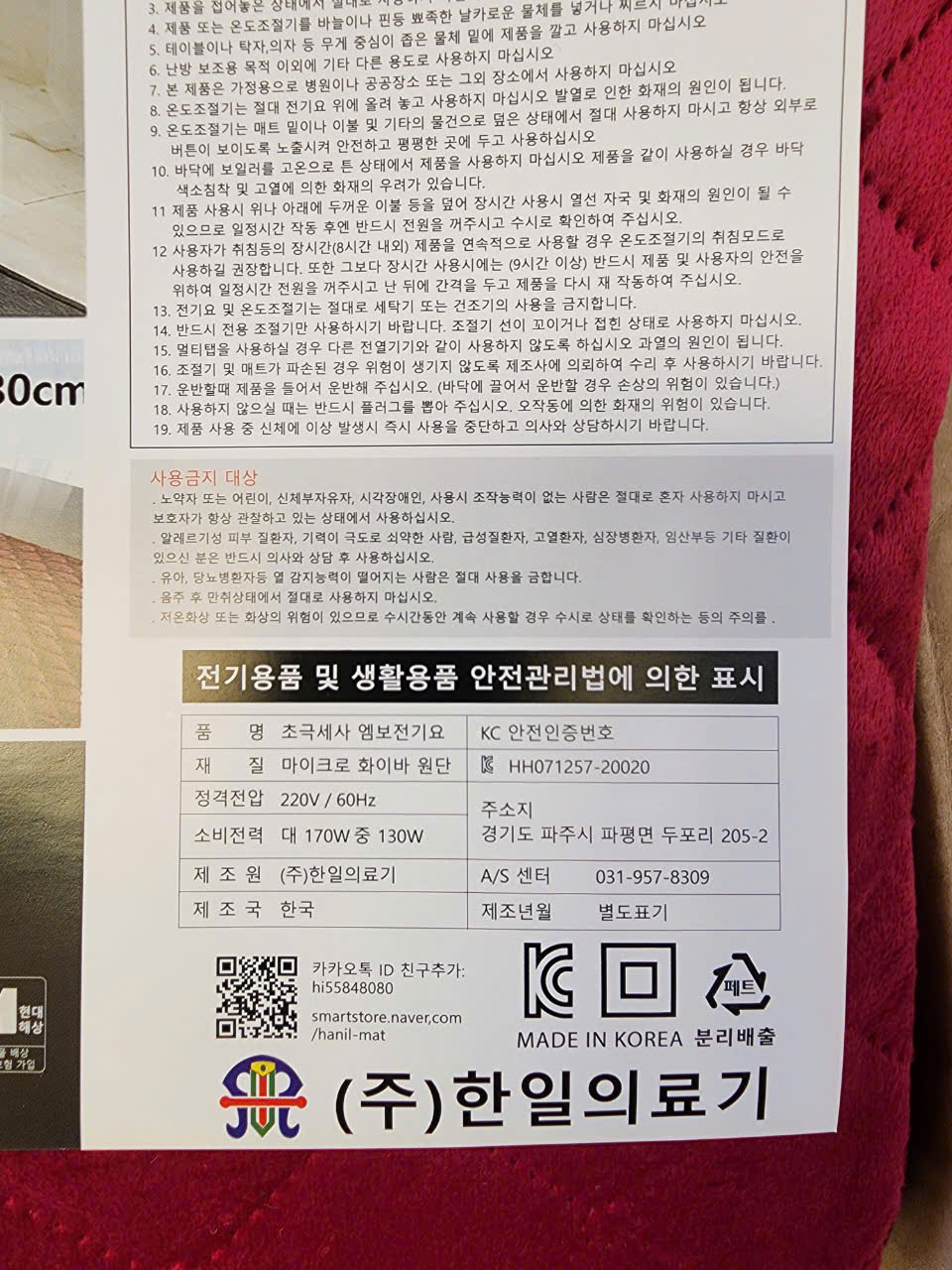 Chăn điện (đệm điện, đêm sưởi) nhung Hanil Hàn Quốc - yteonline.vn
