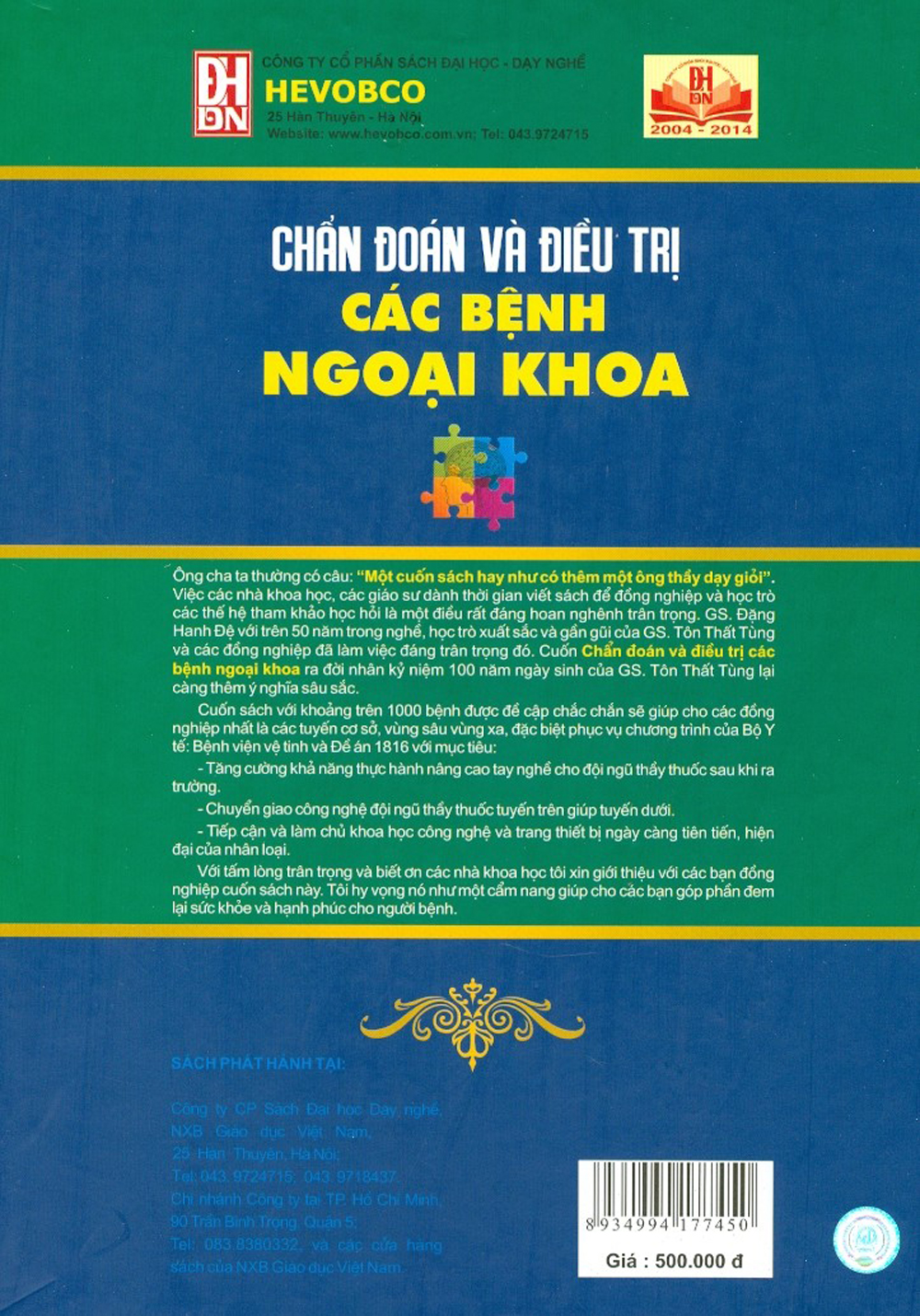Chẩn Đoán Và Điều Trị Các Bệnh Ngoại Khoa Cuốn sách với khoảng trên 1.000 bệnh được đề cập chắc chắn sẽ giúp cho các đồng nghiệp, nhất là ở các tuyến cơ sở, vùng sâu vùng xa tăng cường khả năng thực hành nâng tao cay nghê; chuyển giao công nghệ của đội ngũ thầy thuốc tuyến trên giúp tuyến dưới….