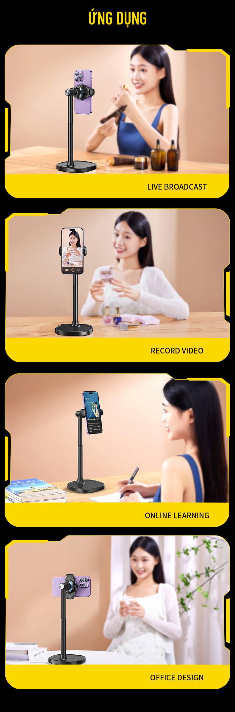 - Chân livestream điện thoại có đế làm lạnh giúp làm mát điện thoại khi livestream lâu - Có đế vững chắc, đứng vững trên mặt phẳng, dễ di chuyển - Quạt có đèn nhiều