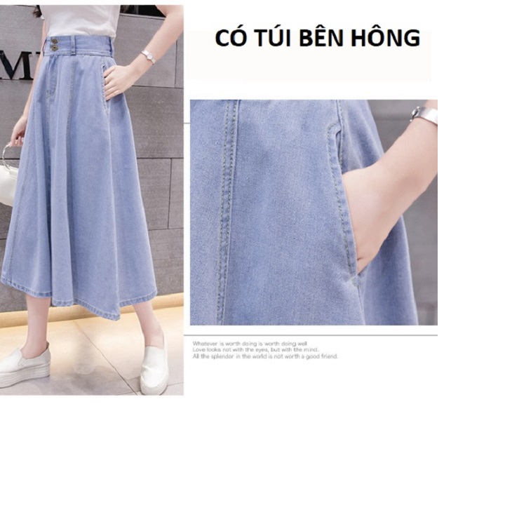 ✨Chân váy jean xòe dài 2 nút màu xanh nhạt C011