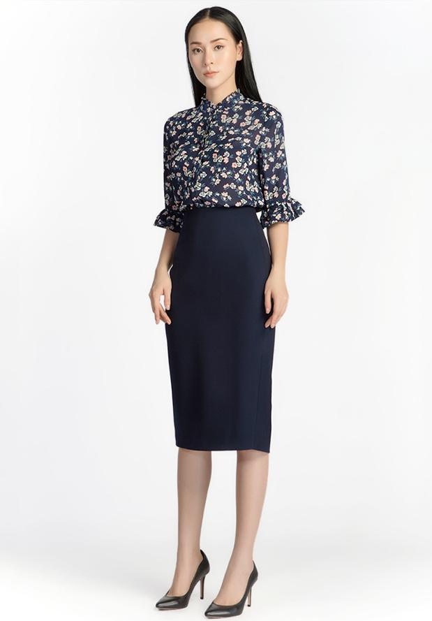 ✨Chân Váy Midi Xẻ Sau De Leah - Xanh Dương Đen