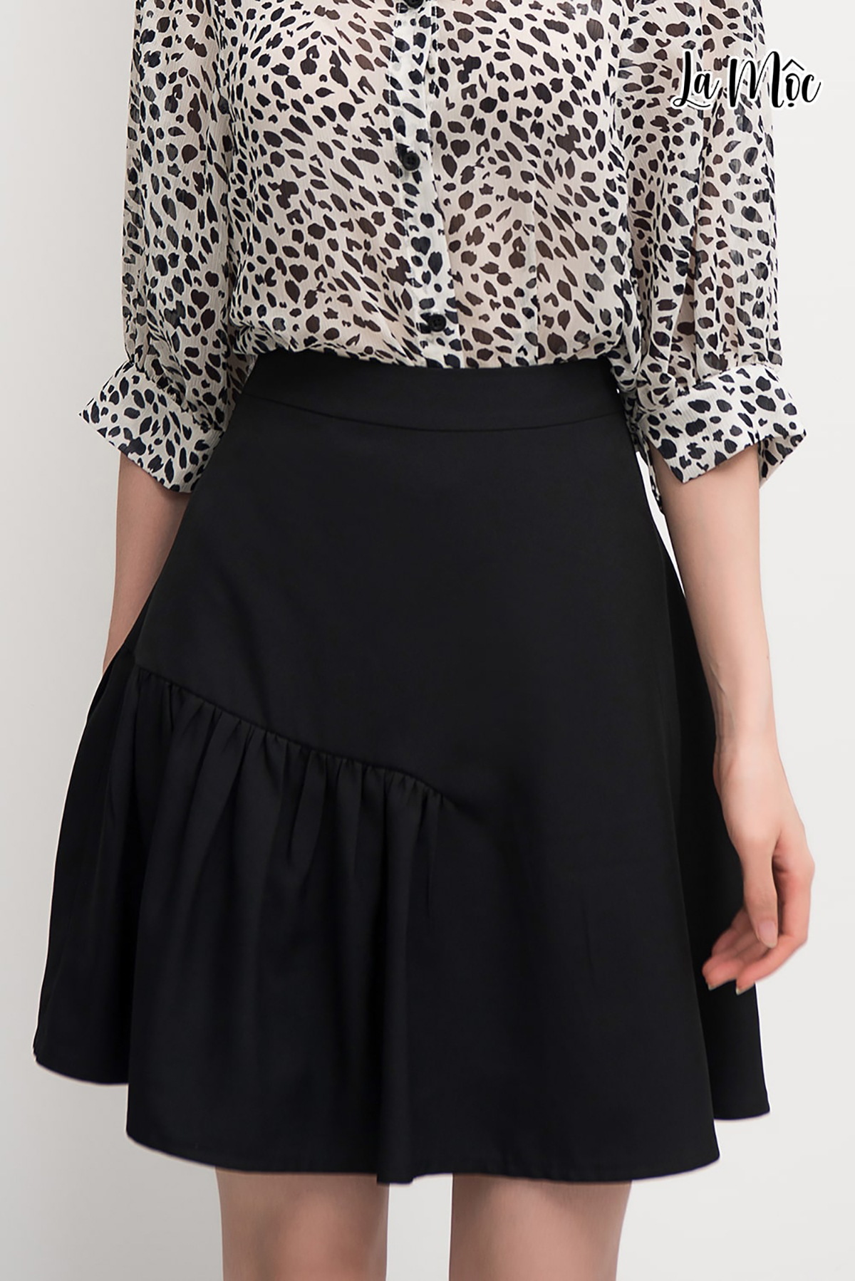 Váy đen nhún La Mộc với chất liệu xoa lụa Korea tạo cảm giác mềm mại. Thiết kế nhún phần hông trước và sau góp phần tôn dáng của nàng. Thiết kế dành riêng cho cô nagf ưa thích sự trẻ trung và năng động.