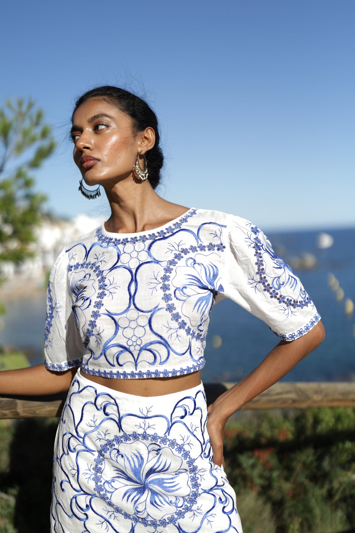 Chân váy thêu Cotton Luna Llena, thêu nổi hoa xanh toàn thân trước, chất vải cotton xô mềm mại, mỏng nhẹ như tơ. Chân váy có lớp lót. Phom suông. Dài áo 38cm (40x38). Dài chân váy 38cm.Phù hợp đi biển...