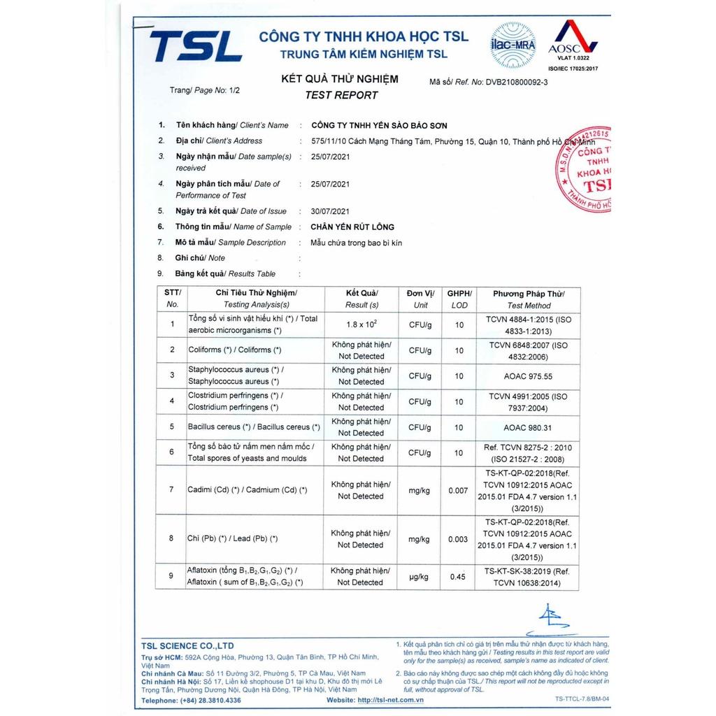 - Chịu trách nhiệm về sản phẩm: CÔNG TY TNHH YẾN SÀO BẢO SƠN.