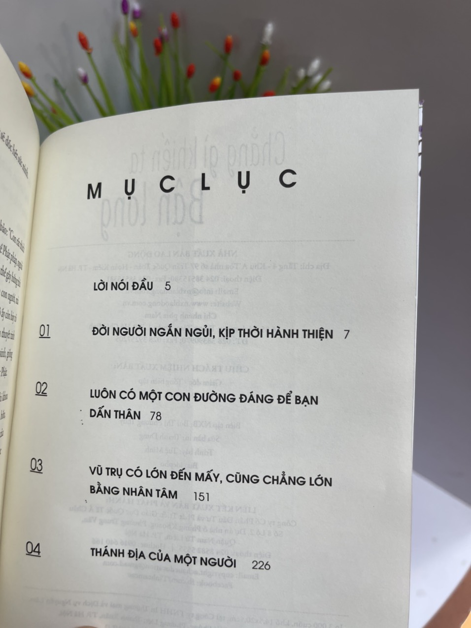 Giới thiệu tóm tắt tác phẩm: "Mọi lựa chọn đều giá trị. Mọi bước đi đều quan trọng. Cuộc sống vẫn diễn ra theo cách của nó, không phải theo cách của ta. Hãy