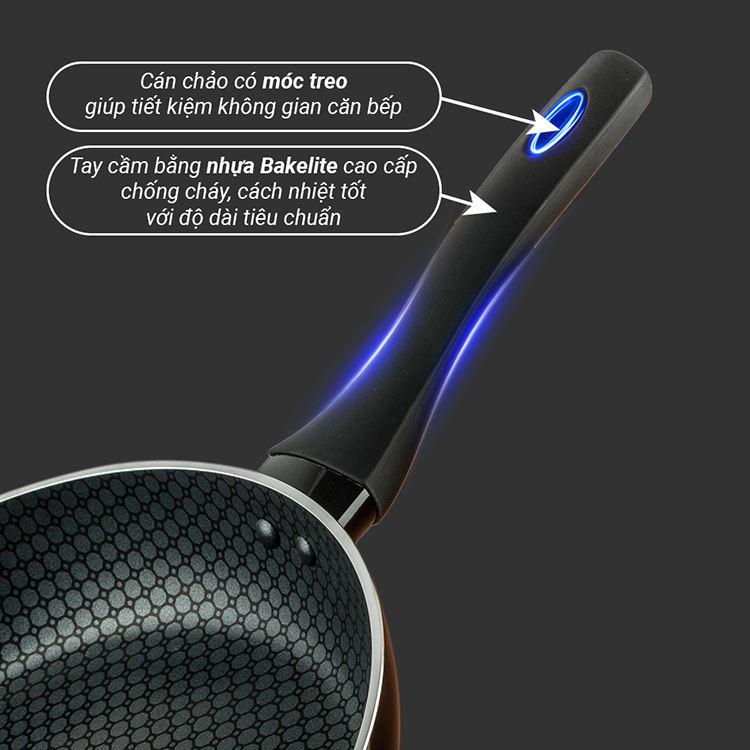 Bề mặt phủ 5 lớp chống dính Teflon, độ bền cao hơn so với chảo thường đảm bảo vệ sinh an toàn thực phẩm và giúp thức ăn sau khi chiên, xào xong không bị dính vào chảo và dễ dàng chùi rửa.