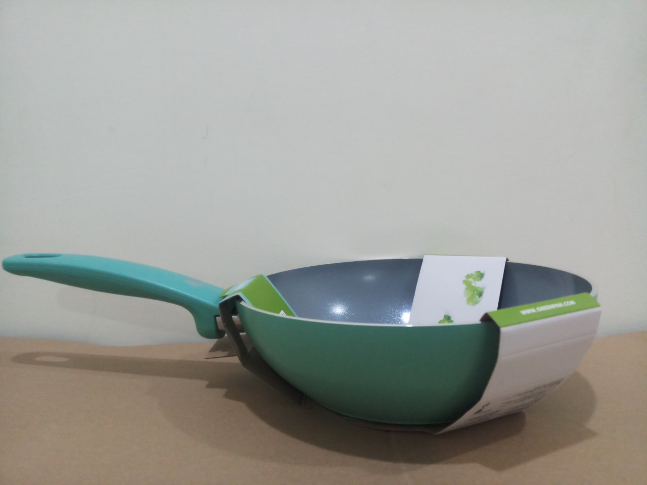 Là một chiếc chảo lòng cực rộng; dùng được đa năng như chiên, xào, nướng. Rất thích hợp làm BBQ. Chảo có hoạ tiết Blakcube được phủ lớp chống dính gốm màu ngọc xanh của
