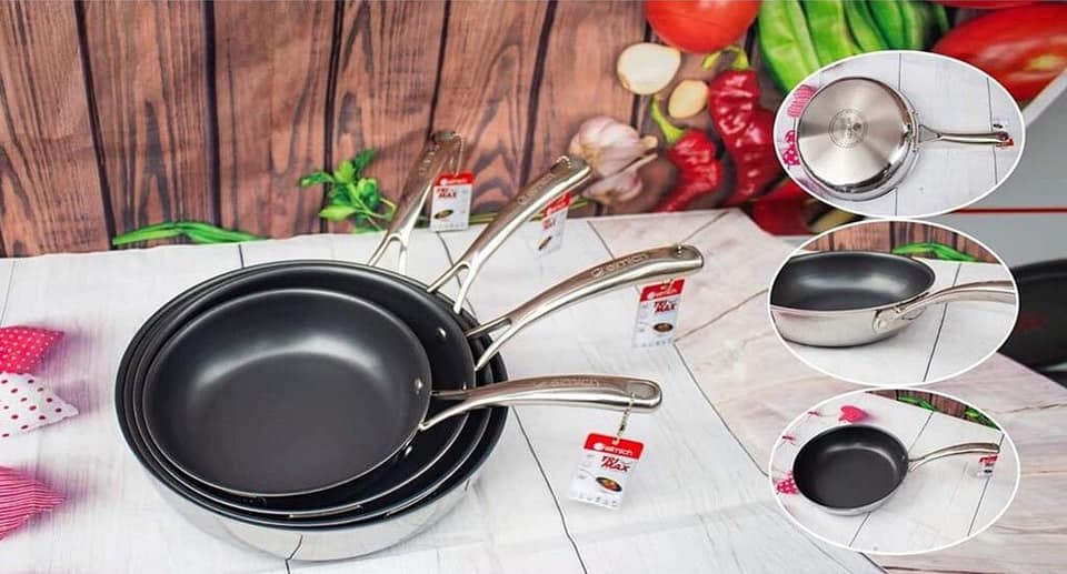 Công năng tuyệt vời giúp việc nấu ăn trở nên đơn giản, nhanh gọn hơn   Chất liệu inox 304 cao cấp, tuyệt đối an toàn Chảo xào Trimax sử dụng chất liệu lớp trong