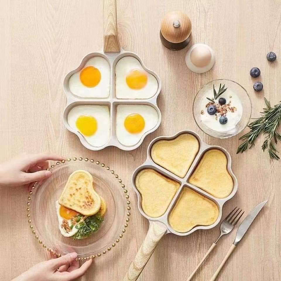 Chảo đá tình yêu chống dính chia 4 ô hình trái tim làm bánh, làm đồ ăn sáng đa năng
