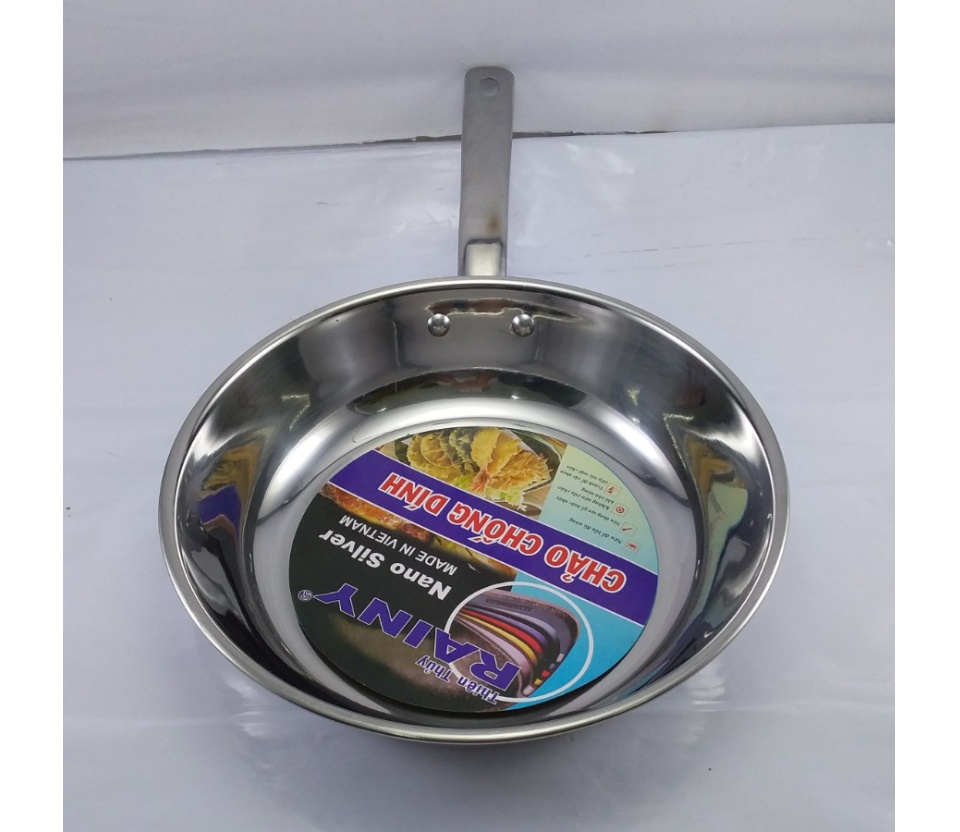 chảo inox 3 đáy caro chống dính Rainy cao cấp có độ dày 5 dem, chất liệu inox với mặt ngoài sáng bóng sang trọng, hấp thụ và truyền nhiệt tốt, có thể sử dụng trên bếp điện từ.