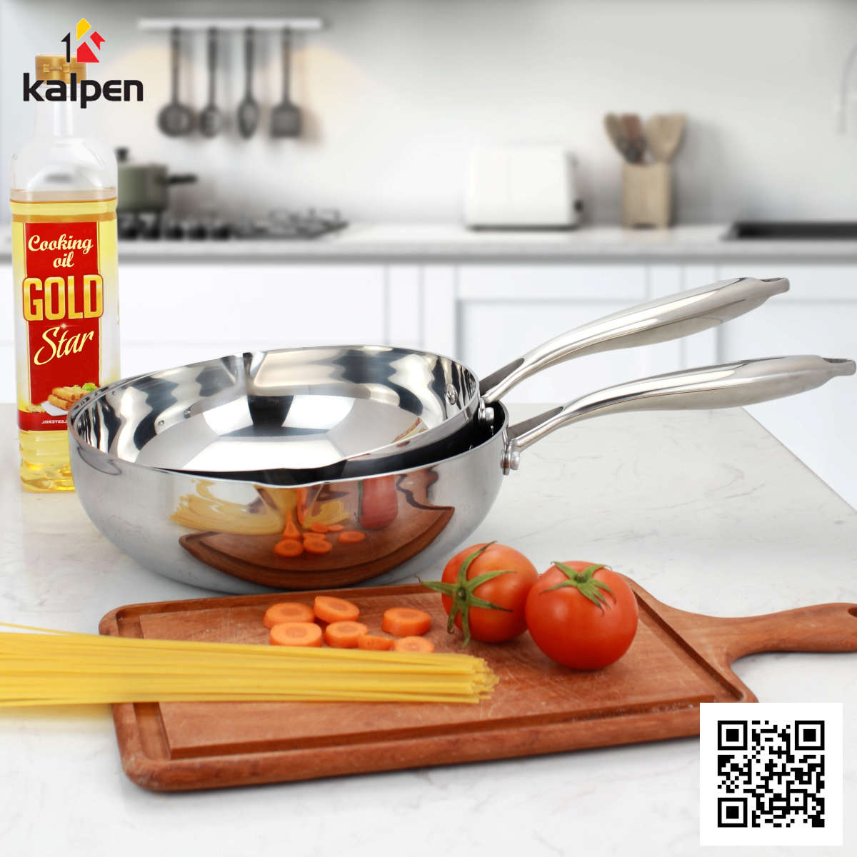 Chảo Inox 3 lớp đúc liền khối miệng rót Kalpen Zenger 20cm, bảo hành 5 năm