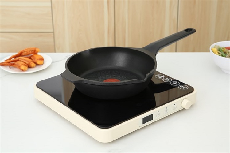 Chảo có đường kính 22 cm có thể chiên ngập dầu, xào được 2 cánh gà cùng một lúc.
