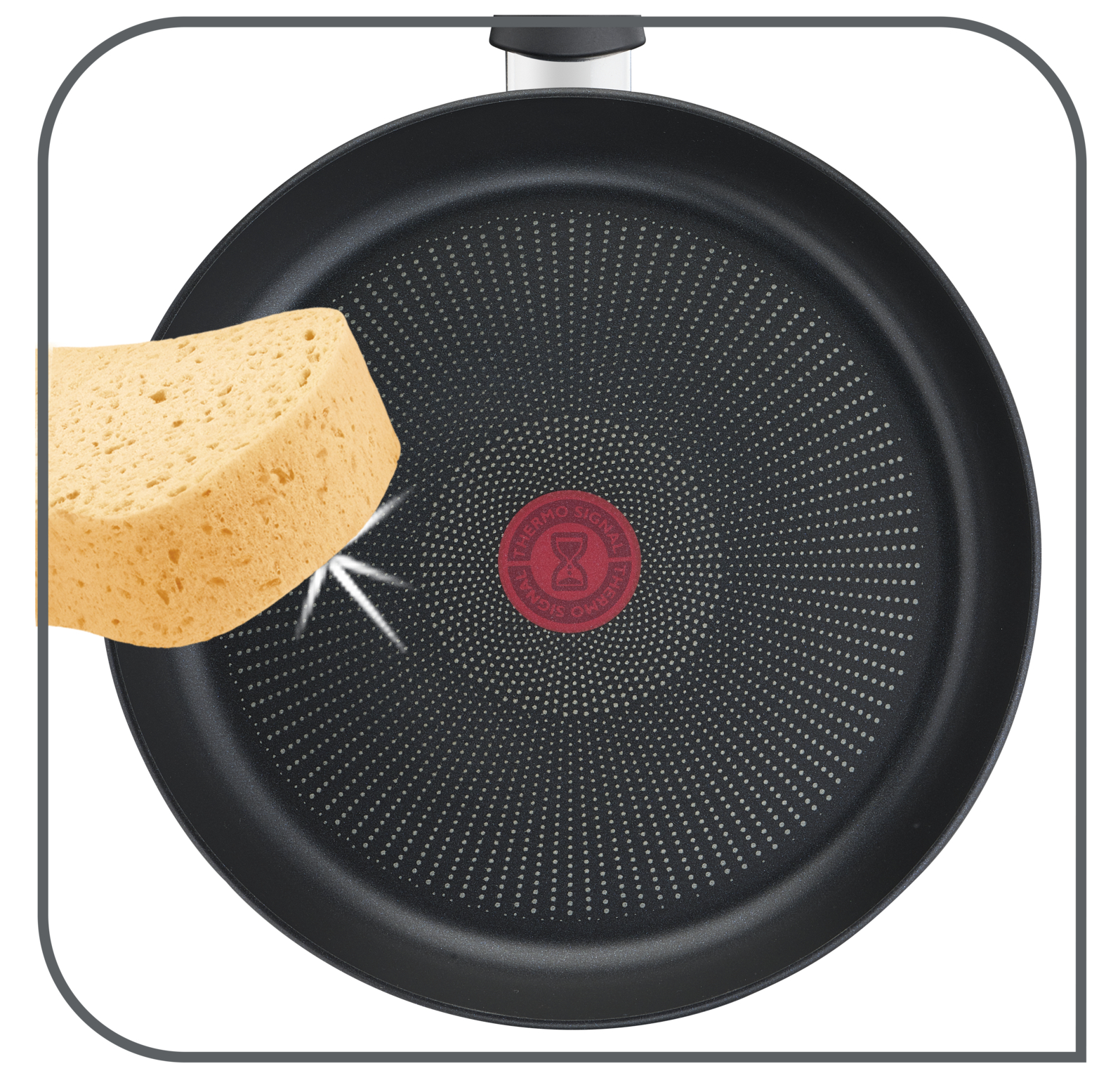 Điểm báo nhiệt thông minh với công nghệ THERMO-SIGNAL hiện đại Ở giữa lòng chảo chống dính Tefal có biểu tượng đồng hồ cát, khi biểu tượng này chuyển sang màu đỏ sẫm, chảo đã đạt nhiệt