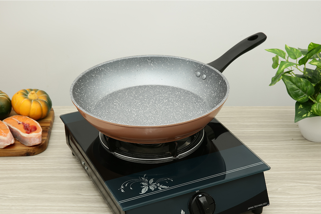 Thân Chảo đáy từ vân đá chống dính được làm bằng hợp kim nhôm cao cấp, dẫn nhiệt nhanh và tản nhiệt đều , giúp tiết kiệm thời gian và nhiên liệu khi nấu.