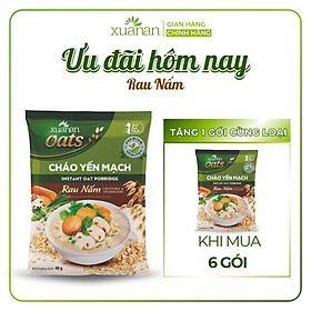 Combo 6 Gói Cháo Yến Mạch Rau Nấm Gói 40G [chay dùng được] Cháo Yến Mạch rau nấm giàu năng lượng và dưỡng chất từ thực vật, thơm ngon không dầu mỡ. Nấm và các loại rau củ được sấy theo công nghệ sấy thăng hoa, vẫn giữ được đầy đủ Vitamin và hương vị tự nhiên. Giá trị dinh dưỡng cho 1 gói cháo 40g Chất đạm g ≥ 4.00 Chất xơ g ≥ 2.10 Năng lượng Kcal ≥ 120 Chất béo g ≥ 2.00 Carbohydrate g ≥ 21.80 Đối tượng sử dụng: Trẻ em trên 36 tháng tuổi và người lớn. Quy cách đóng gói: 40g/ gói Thành phần: Gói cháo yến mạch nguyên chất (60%), phôi cháo gạo. Gói rau củ: nấm đông cô sấy thăng hoa (2%); cà rốt, paro, ngò rí sấy thăng hoa. Gói soup bột: hạt nêm nấm hương và hạt sen, muối iốt, đường, bột tiêu, maltodextrin, bột gia vị, chất chống đông vón (551), hương tổng hợp dùng cho thực phẩm. Hướng dẫn sử dụng: Cho gói cháo, gói soup bột và gói rau củ vào tô. Chế nước vừa đun sôi vào tô (khoảng 350ml) Đậy kín tô để trong 3 phút. Mở nắp tô, trộn đều là dùng được ngay.