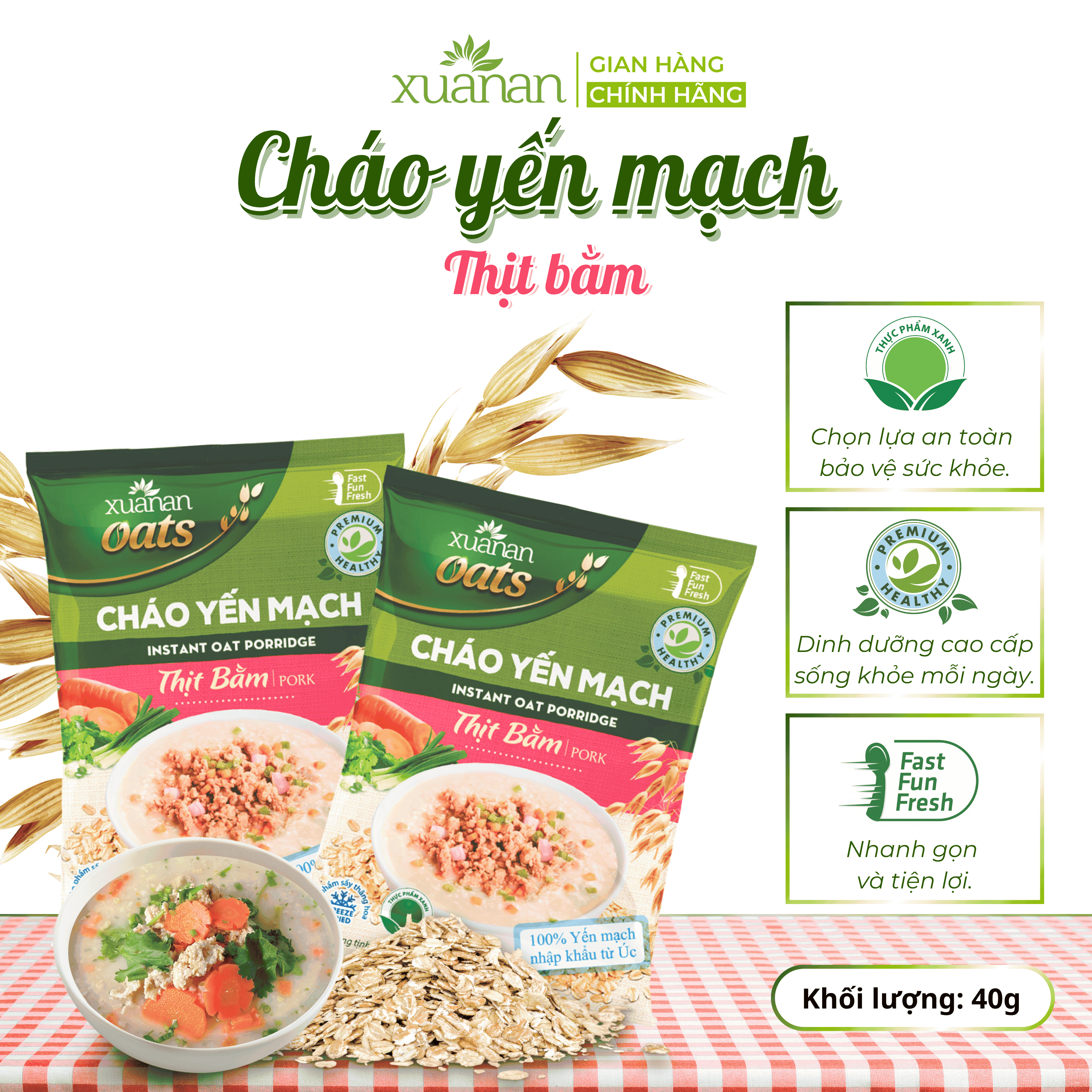 CHÁO YẾN MẠCH THỊT BẰM- GÓI 40GR