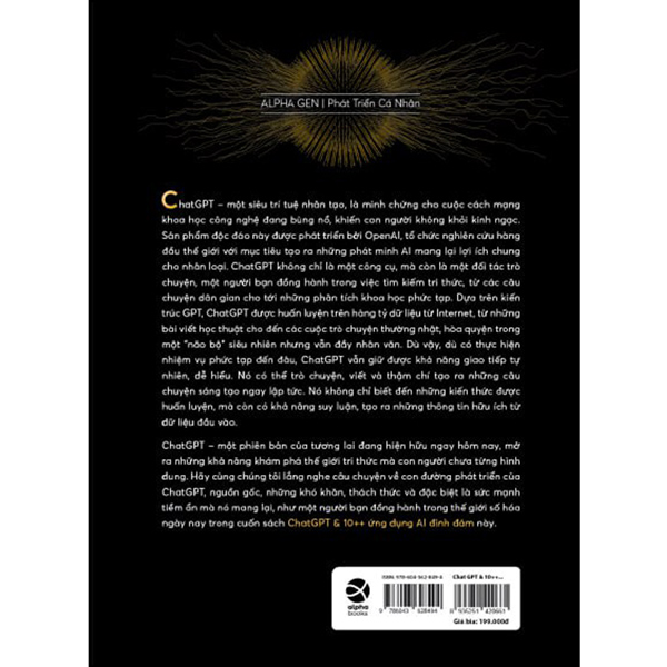 Cuốn sách đưa ra những kiến thức mới về chatGPT – công cụ trí tuệ nhân tạo đang có sức hấp dẫn vô cùng lớn hiện nay. Trong cuốn sách này, tác giả giới thiệu về chatGPT và những tính năng cơ bản của nó, và những ứng dụng của trí tuệ nhân tạo nói chung trong các lĩnh vực như sản xuất, y tế và chăm sóc sức khỏe, giáo dục. Tiếp theo, tác giả chỉ ra hơn 10 ứng dụng AI mạnh mẽ nhất hiện nay có thể liên kết với chatGPT, đồng thời hướng dẫn từng bước về cách liên kết để độc giả có thể làm theo dễ dàng nhất. Cuốn sách này hướng đến những người đang quan tâm đến việc sử dụng trí tuệ nhân tạo cho công việc và cuộc sống và đang tìm kiếm những công cụ trí tuệ nhân tạo phù hợp với công việc của mình.