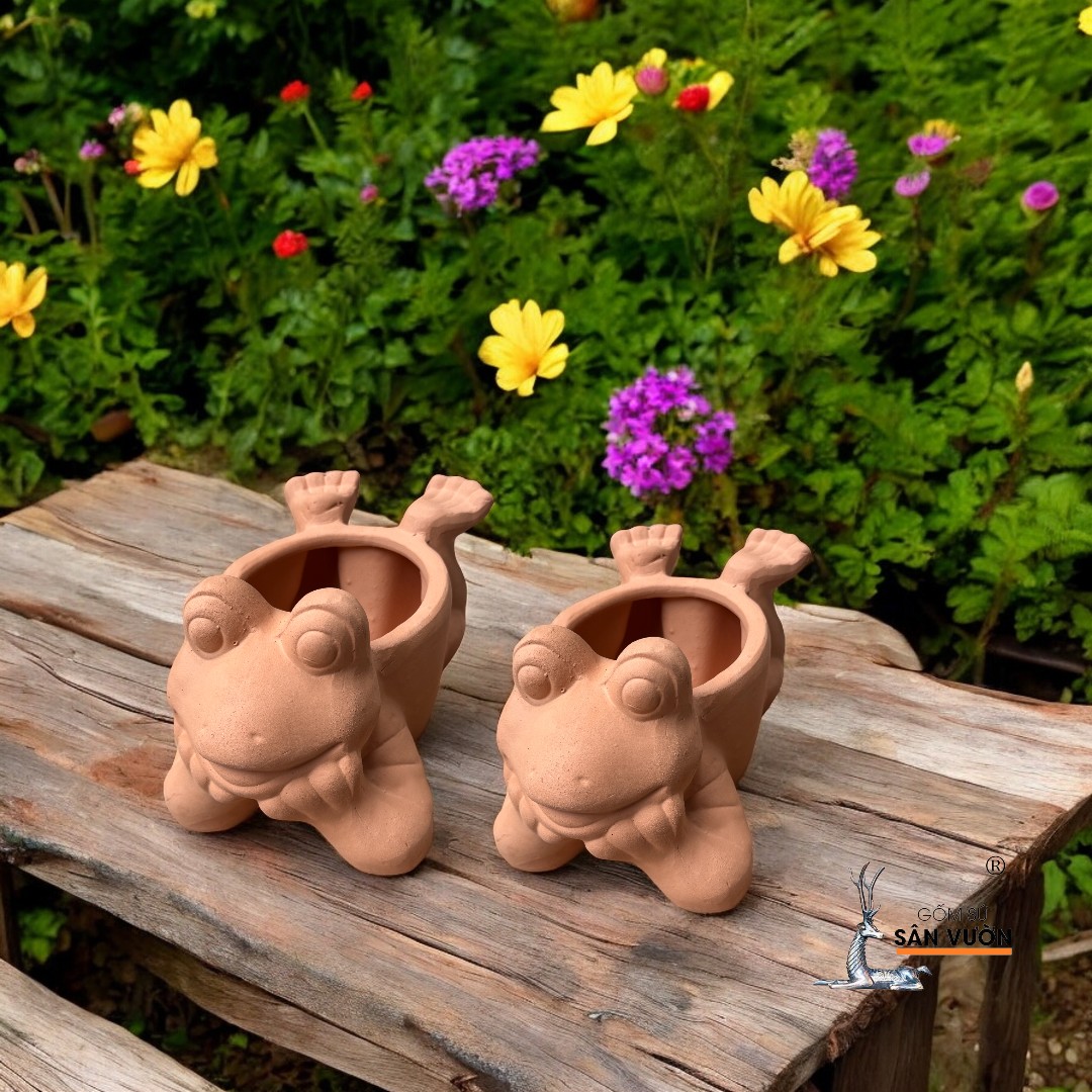 ✨Chậu Gốm Đất Nung Hình Con Ếch Nằm - Chậu Decor và Trồng Cây