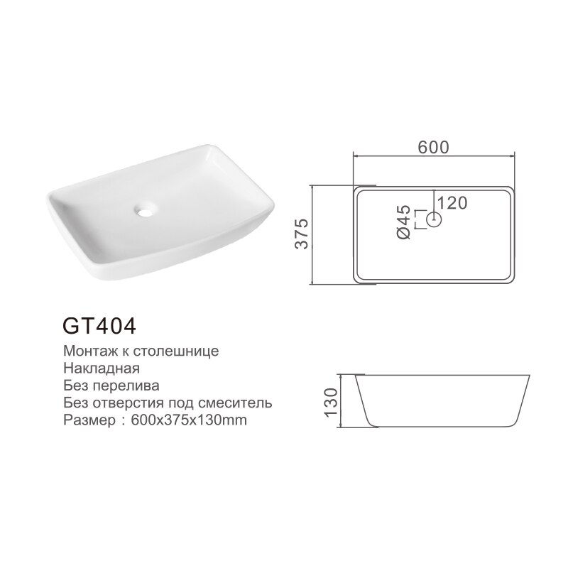 Kích thước: 600x375x130mm (Sản phẩm không bao gồm vòi lavabo, bộ xả….)