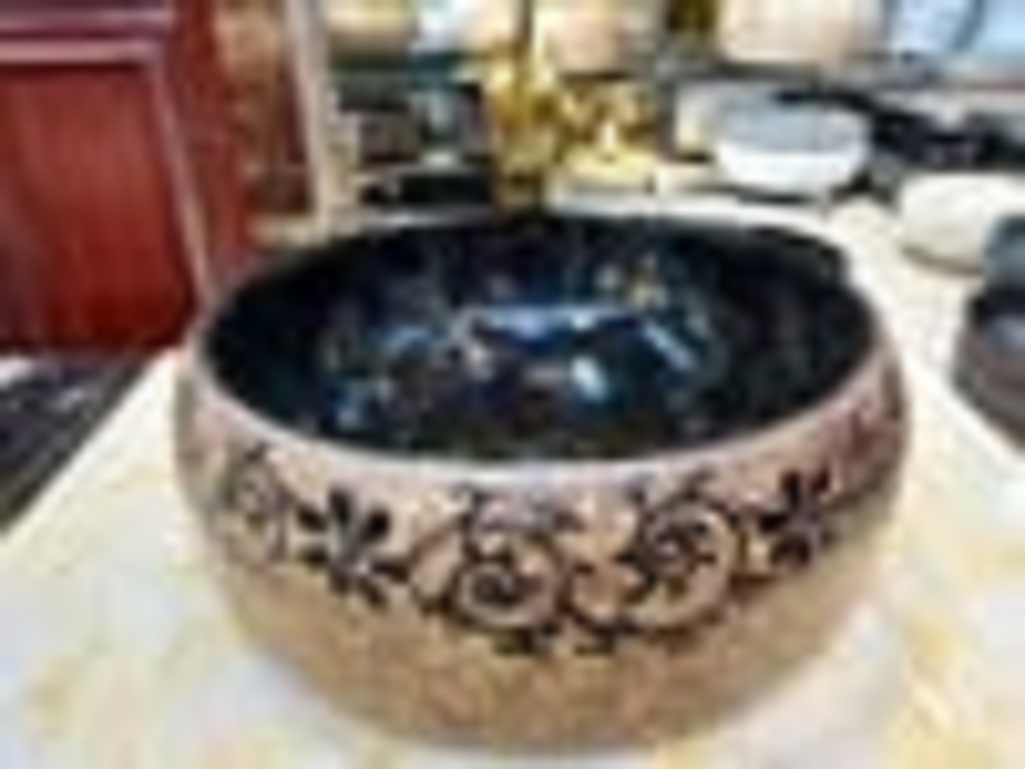 Chậu Lavabo Đặt Bàn Vân Đá Đen TTCERA LB67