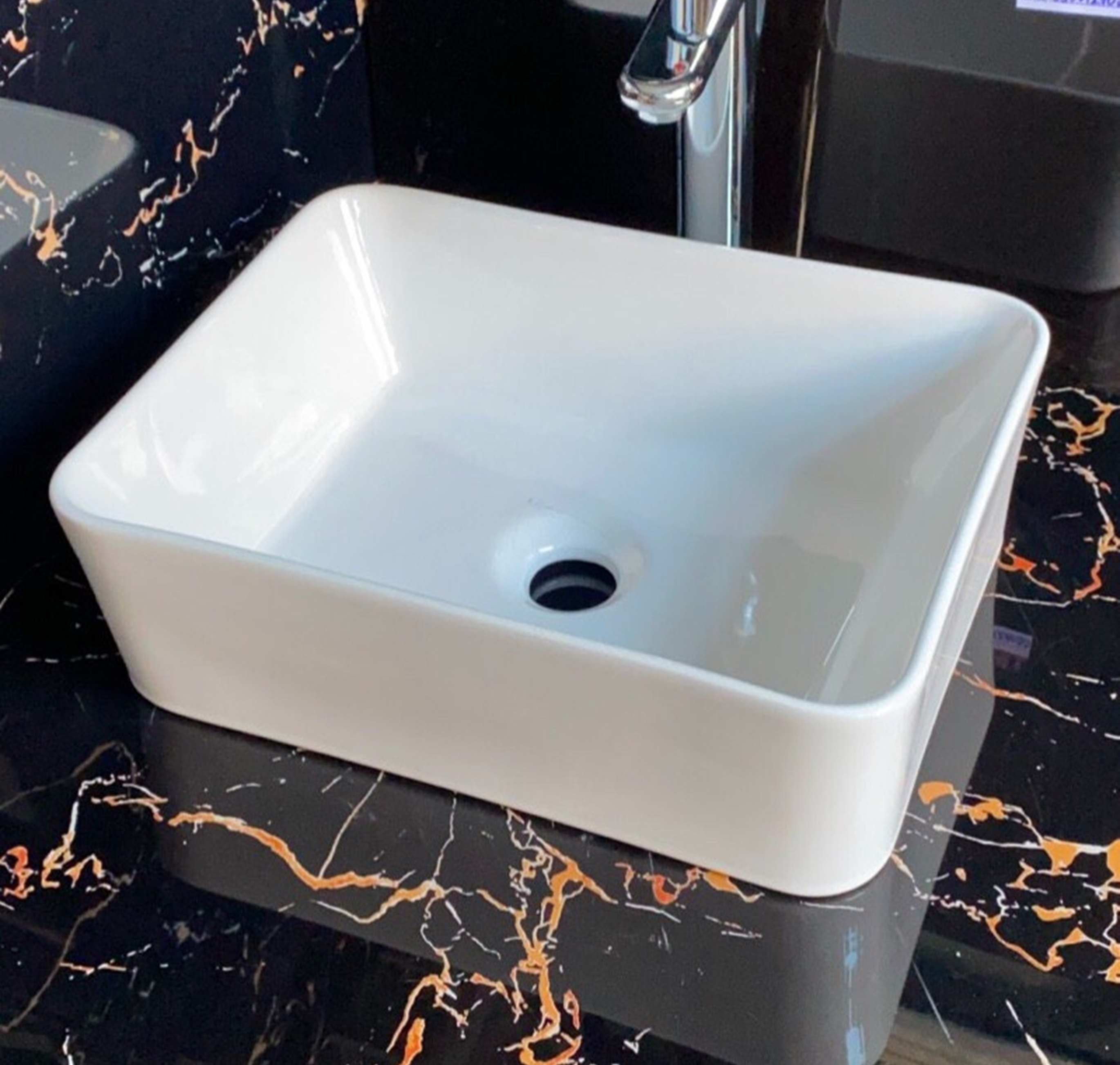 Sản phẩm: Chậu rửa lavabo đặt bàn RG-80008B Thiết kế chậu đặt bàn hình vuông bo góc sang trọng Công nghệ FFC hiện đại, vật liệu từ cao lanh chất lượng cao Nhiệt độ nung: