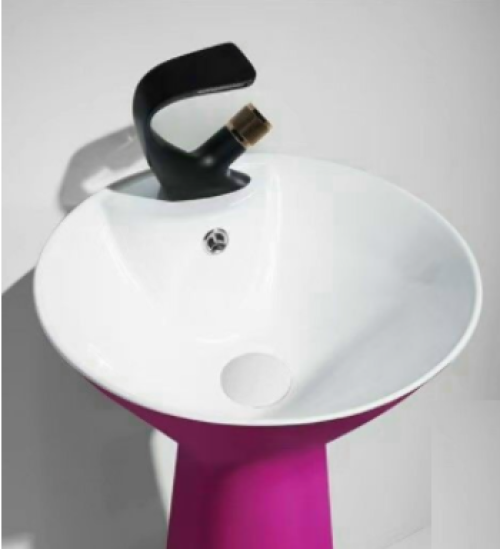 ✨CHẬU LAVABO TRỤ TRÒN TRỤ NÓN LÁ LIỀN KHỐI MEN TRONG TRẮNG, NGOÀI MEN MẬN CHÍN (ĐỎ) GROVES GRL NTT04 (43x43x87 cm)