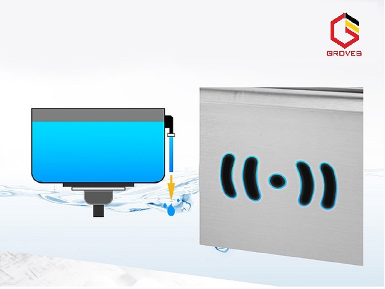 Lưu ý: bộ sản phẩm không kèm theo vòi rửa bát & bình đựng nước rửa chén.