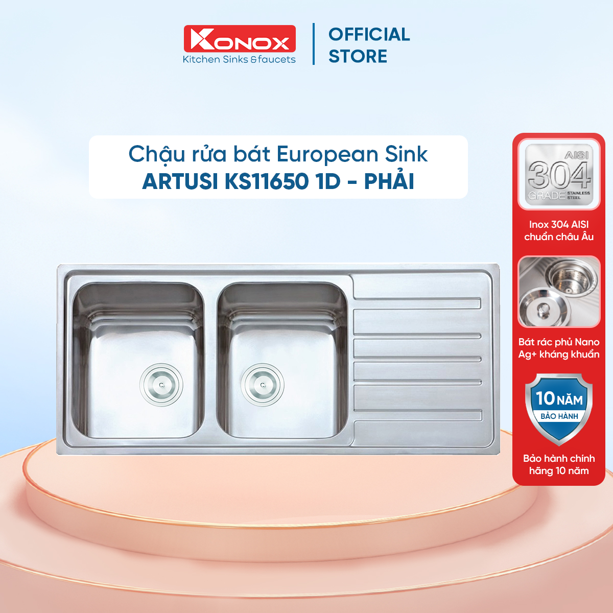 ✨Chậu rửa bát Konox, European Series, Model Artusi KS11650 1D , Inox 304AISI tiêu chuẩn châu Âu, 1160x500x215(mm), Hàng chính hãng